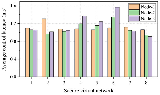 The emulation results of the average control latency for the intercommunication between the SDN controller and a single node are illustrated in Figure 5. It can be observed that the average control latency is lower than 2 ms for a once-only intercommunication, demonstrating the benefits of the KPON in supporting the low-latency configuration of secure virtual networks. In addition, the virtual nodes/links for a secure virtual network are processed individually in the emulation testbed, hence the latency will increase in proportion to the scale of the virtual network.