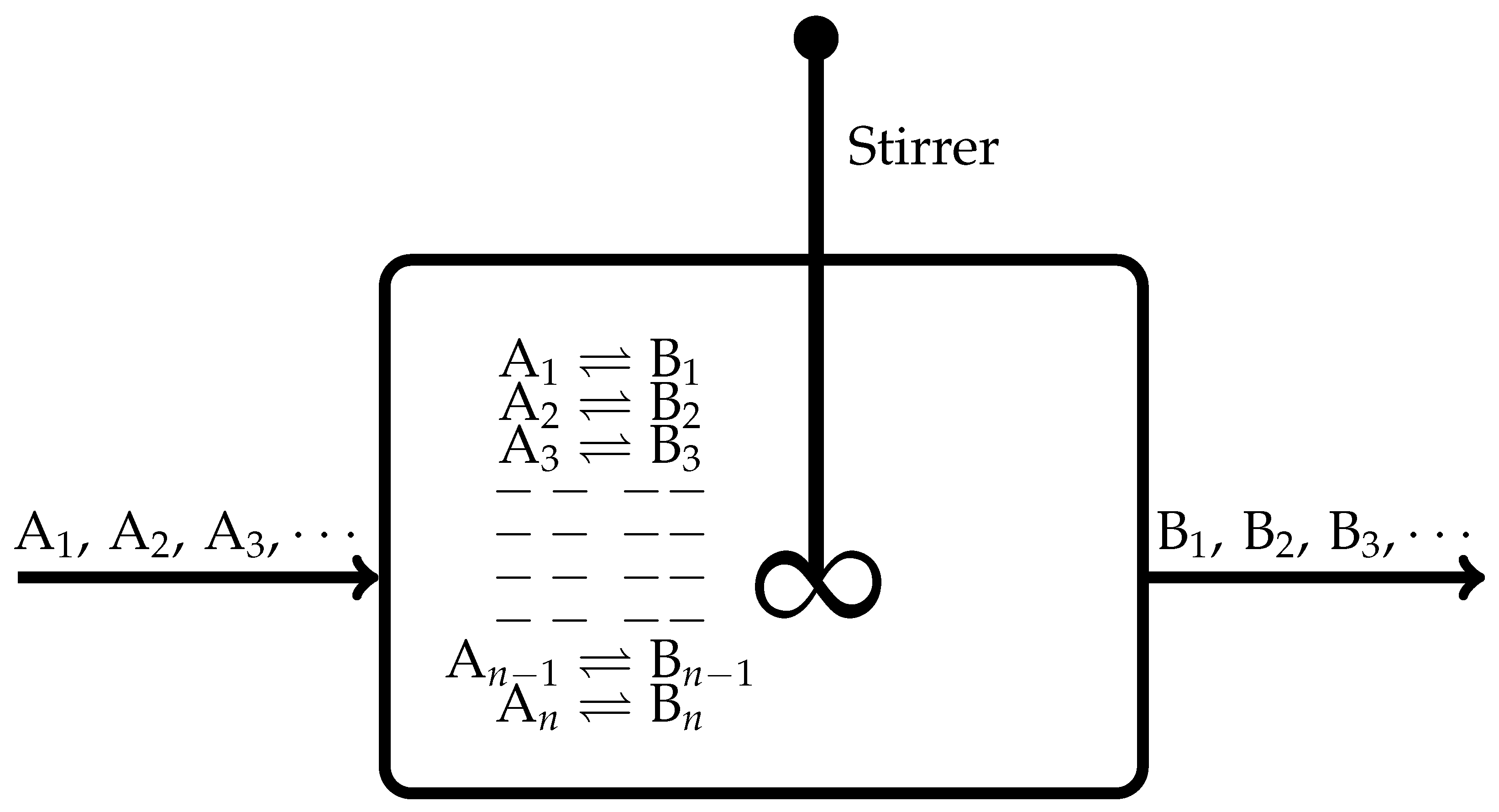 - When this CSTR attains an equilibrium state, the functional dependence of Equation (1) transforms to the following:That is, now we have for all , implying they do not remain independent thermodynamic variables in the case of chemically reacting systems.