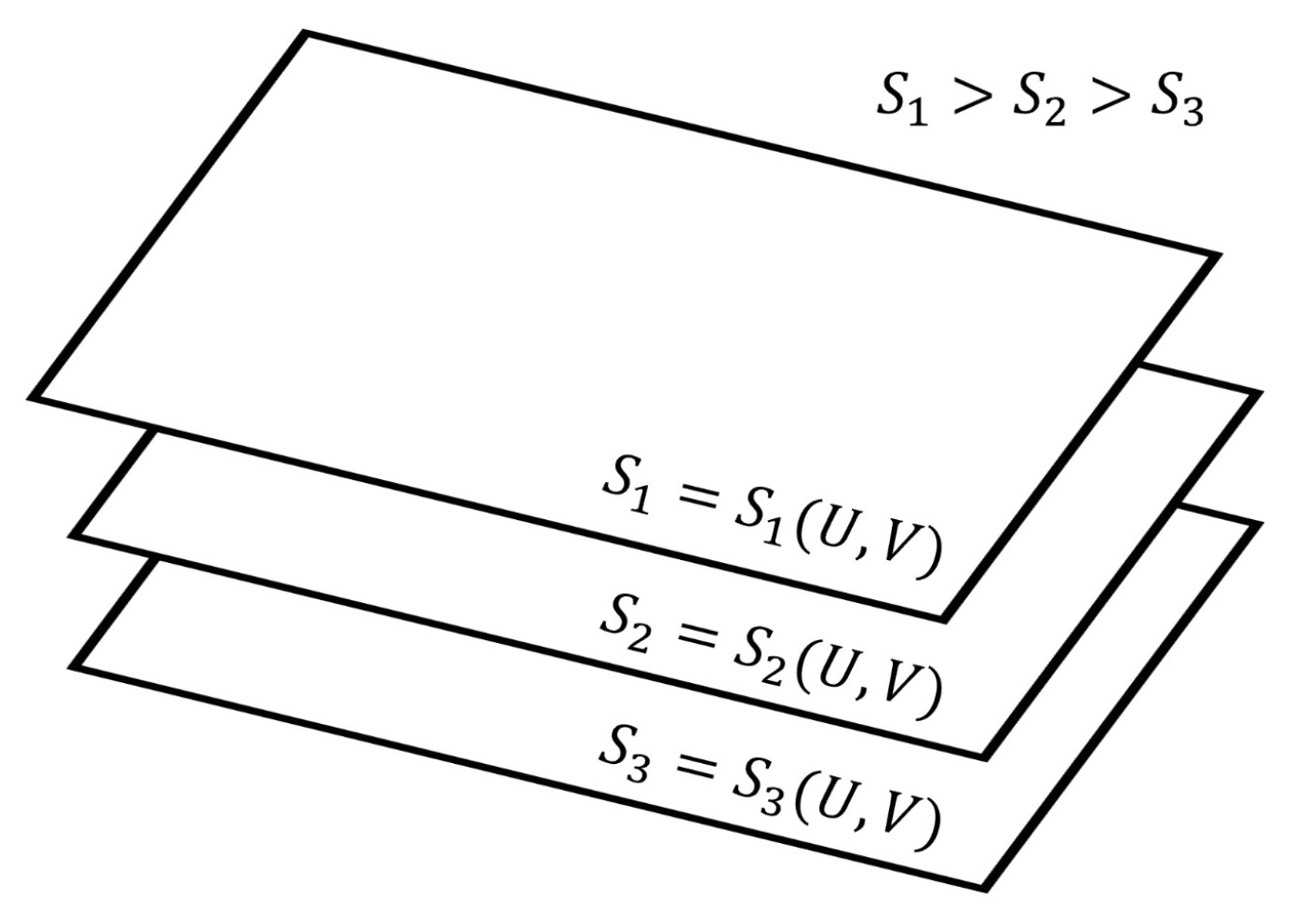 - The paths through a succession of nonequilibrium steady states of a given hypersurface of Figure 2 are the reversible isentropic paths. Their thermodynamic description in the De Donderian settings [20] reads as follows:where p is the pressure, T is the temperature and are the respective chemical affinities.The paths through a succession of nonequilibrium steady states across the hypersurfaces in Figure 2 are also reversible ones but are non-isentropic, as the entropy does not remain constant. Its description in the present case is as follows:Recall that, by definition, a thermodynamically reversible path is a limiting case but never realized in practice; hence, they are termed as quasi-static paths, which, in principle, can be traversed in either direction. Also, since such paths are prescribed as the ones connecting infinitesimally close successions of time-independent nonequilibrium states, they cannot be termed irreversible paths, though the rate of entropy production remains non-zero. Earlier too, Keizer coined such reversible paths through a succession of nonequilibrium steady states [27,28,29] in his version of statistical thermodynamics of nonequilibrium processes based on the fluctuations of nonequilibrium steady states. On such paths, the complete compensation of the rate of entropy driven out and the rate of entropy production, as stated in Equation (5), is maintained (In biological systems an example approaching to a reversible path through a succession of nonequilibrium steady states is often presented. For example, biochemical reactions in biological cells, which are usually modelled as undergoing in a CSTR, operate under the nonequilibrium steady state conditions. And often other physico-chemical processes of a biological system are cooperatively associated with them. It has been observed that in biological systems it is not always possible to maintain the existence of the same nonequilibrium steady state continuously, but the system reversibly shifts to a new nonequilibrium steady state which gradually returns to the original one. This transition is considered as very close to a reversible passage through nonequilibrium steady states. That is why, the other biological processes dependent on this nonequilibrium steady state remain practically unhampered).On the other hand, the isentropic planes depicted in Figure 3 consist of equilibrium states. Therefore, when the thermodynamic reversible paths, through a succession of equilibrium states, are prescribed, then on such paths, no entropy production exists. Hence, in this case, the non-isentropic paths are described by and Equation (7), whereas the isentropic paths follow , with the following explicit description: