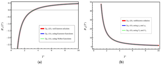 where and are Kummer’s functions, of first and second kind, respectively. are Weber functions, and and are constants to be determined by solving the two-point boundary values problem.