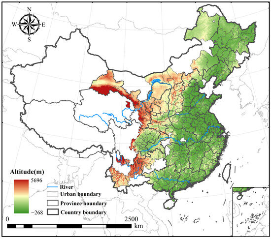 Therefore, this study selects 283 cities as the research sample to fully explore this spatiotemporal variation, as shown in Figure 2. These samples include 279 prefecture-level cities across China, as well as the four municipalities directly under the central government (Beijing, Shanghai, Tianjin, and Chongqing). Some regions, such as autonomous states, are excluded due to insufficient data. When data are available, the study scale is higher than that of provincial administrative units, allowing for a better representation of regional differences.