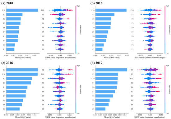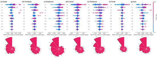 Although certain tree-based machine learning models, such as Random Forests, XgBoost, and LightGBM, offer a viable method for uncovering the non-linear relationships between features and outputs. However, these models only provide aggregate results and cannot capture the non-linear effects of individual features [71]. Therefore, this study employs SHAP to enhance the interpretability of machine learning model results. The SHAP method draws upon the Shapley value from game theory [72] to assess the relative importance of individual features within the model. SHAP calculates the Shapley value for each feature by considering all possible combinations, thereby revealing the marginal contribution of each variable to the model’s output [73]. This method is applicable not only to global interpretation but also to local interpretation. Making it an important tool for model interpretability. The equations are as follows: