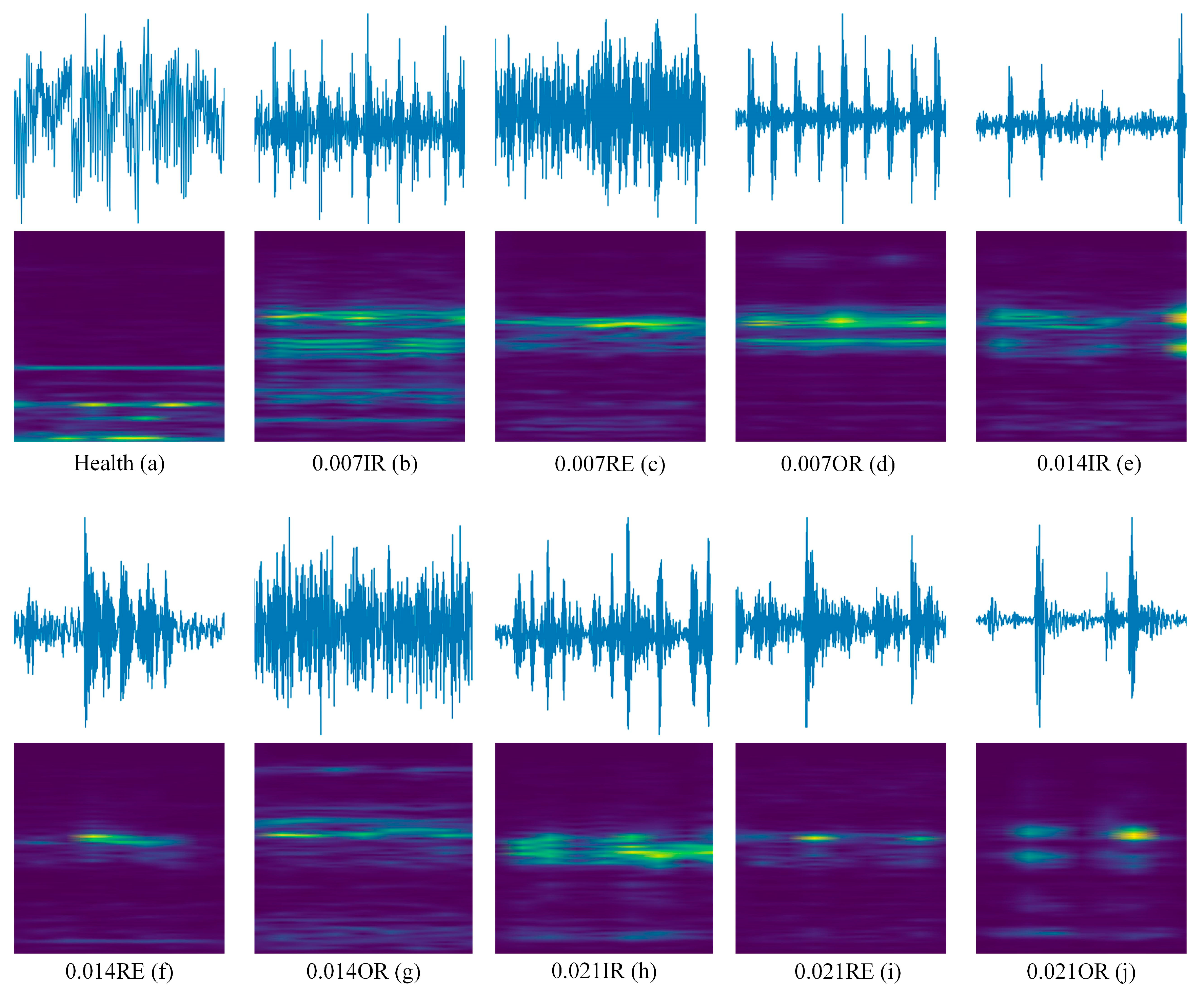 Table 2). The defects are accurately hole-made by electric discharge machining (EDM), which ensures the consistency of fault depth and location, thus ensuring that the dataset has a high degree of confidence in terms of controllability of working conditions and experimental reproducibility. The raw data are stored in the form of time-domain vibration signals without any preliminary processing and are suitable for the extraction of features and modeling methods in the time domain, frequency domain, and time–frequency domain.
