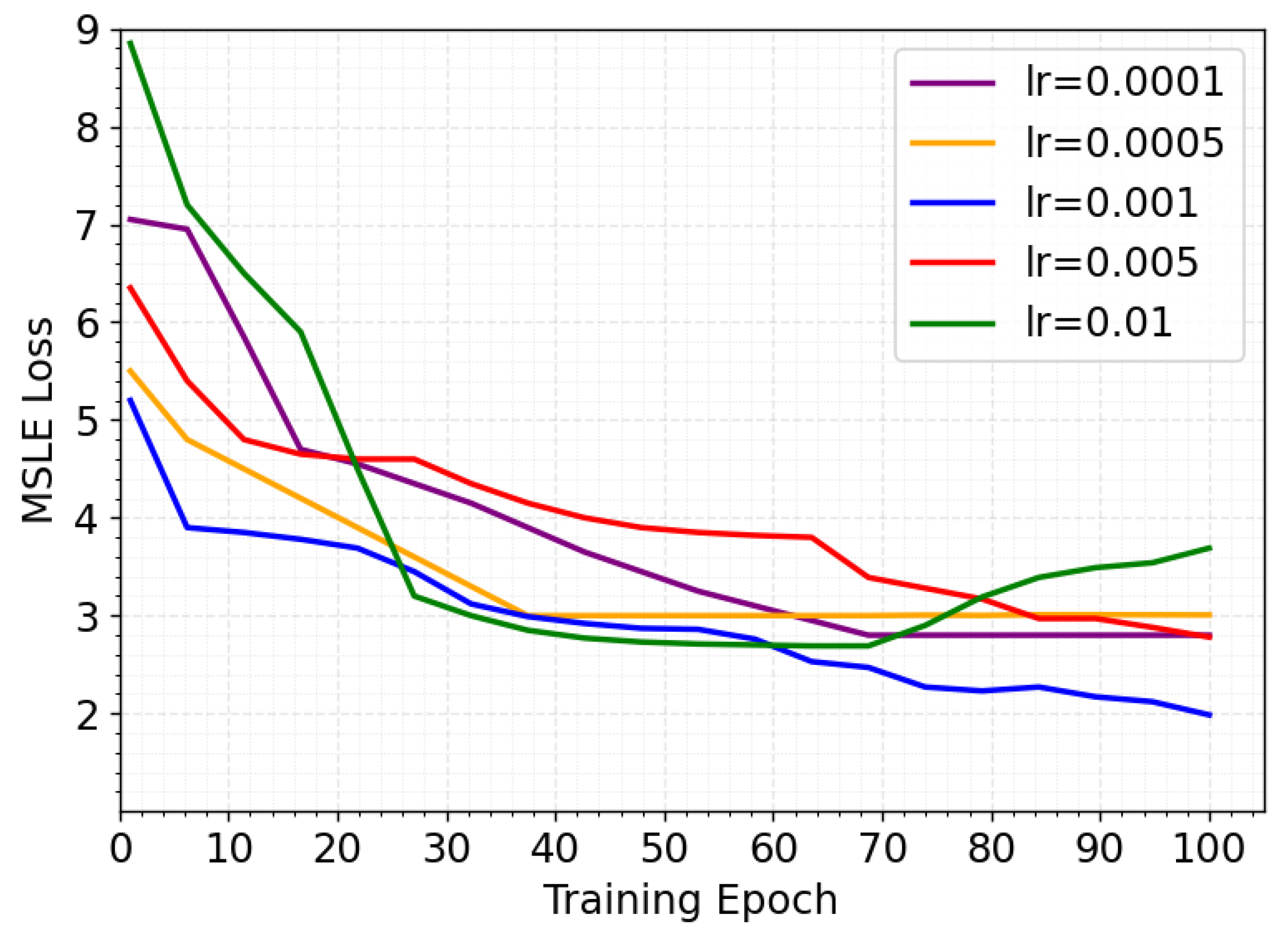 - Feature-linear [38]: A linear regression model is used to fit the cascade growth, with the learning rate set to 0.01.