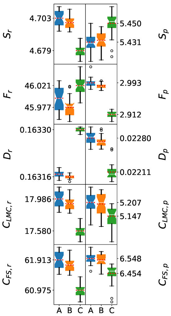 where is the mean, is the standard error, is the standard deviation, and is the size of the ith sample. The degrees of freedom are approximated using the Welch–Satterthwaite equation [56]. For the t-test, the null hypothesis is that the means of the distributions are equal. If the calculated p-value is lower than 0.05, we reject the null hypothesis, meaning that the means of the samples are significantly different.