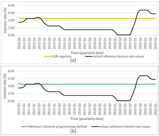 To solve the presented problem (6) with the constraints (4), which represents a model incorporating the monetary and fiscal policy mix, dynamic optimization methods can also be used. One of the dynamic optimization methods used in the article is Bellman’s dynamic programming. Unlike the linear–quadratic regulator (LQR), the Bellman dynamic programming method can be applied not only to linear–quadratic problems but also to optimal control problems that may be nonlinear and stochastic.
