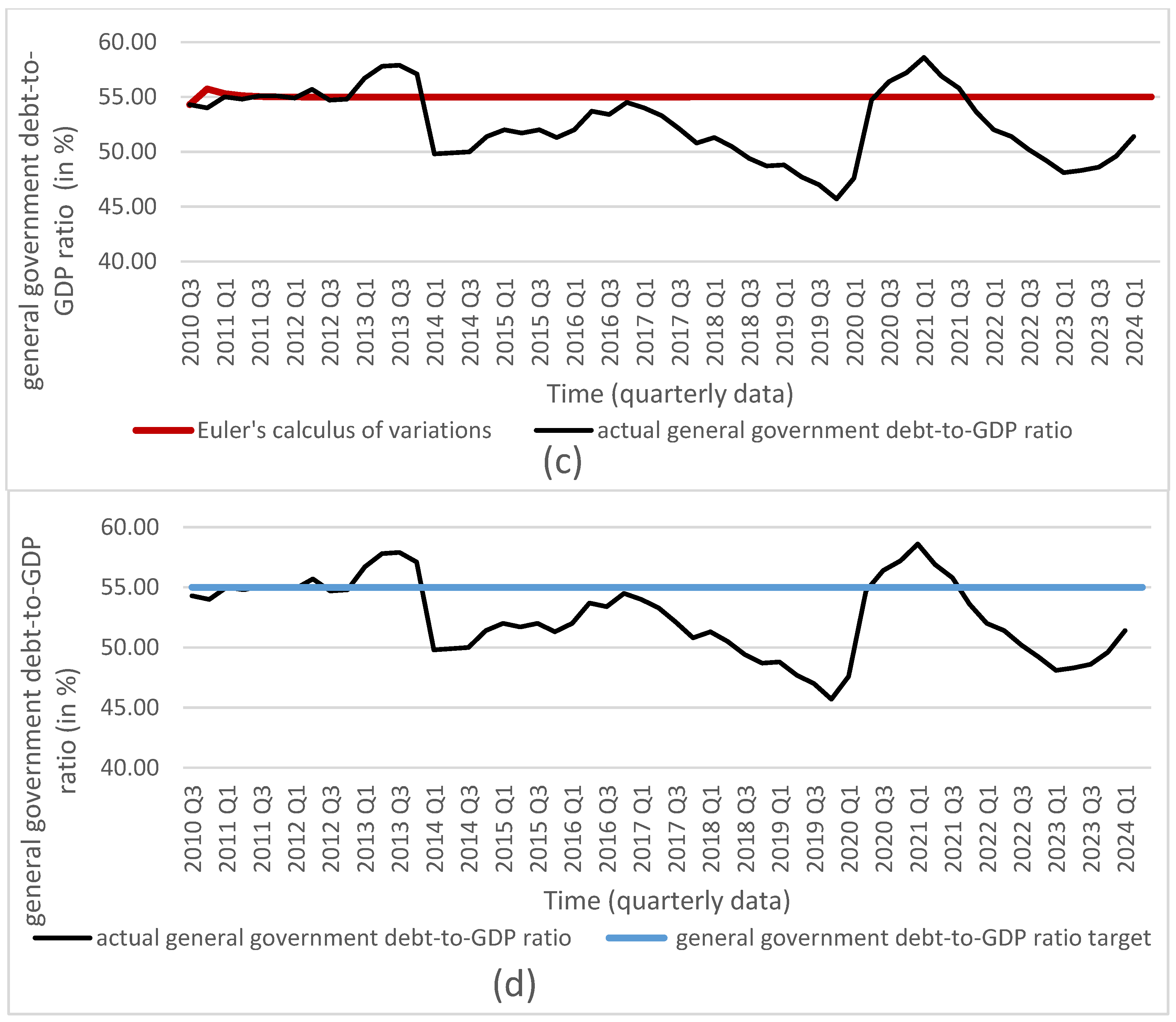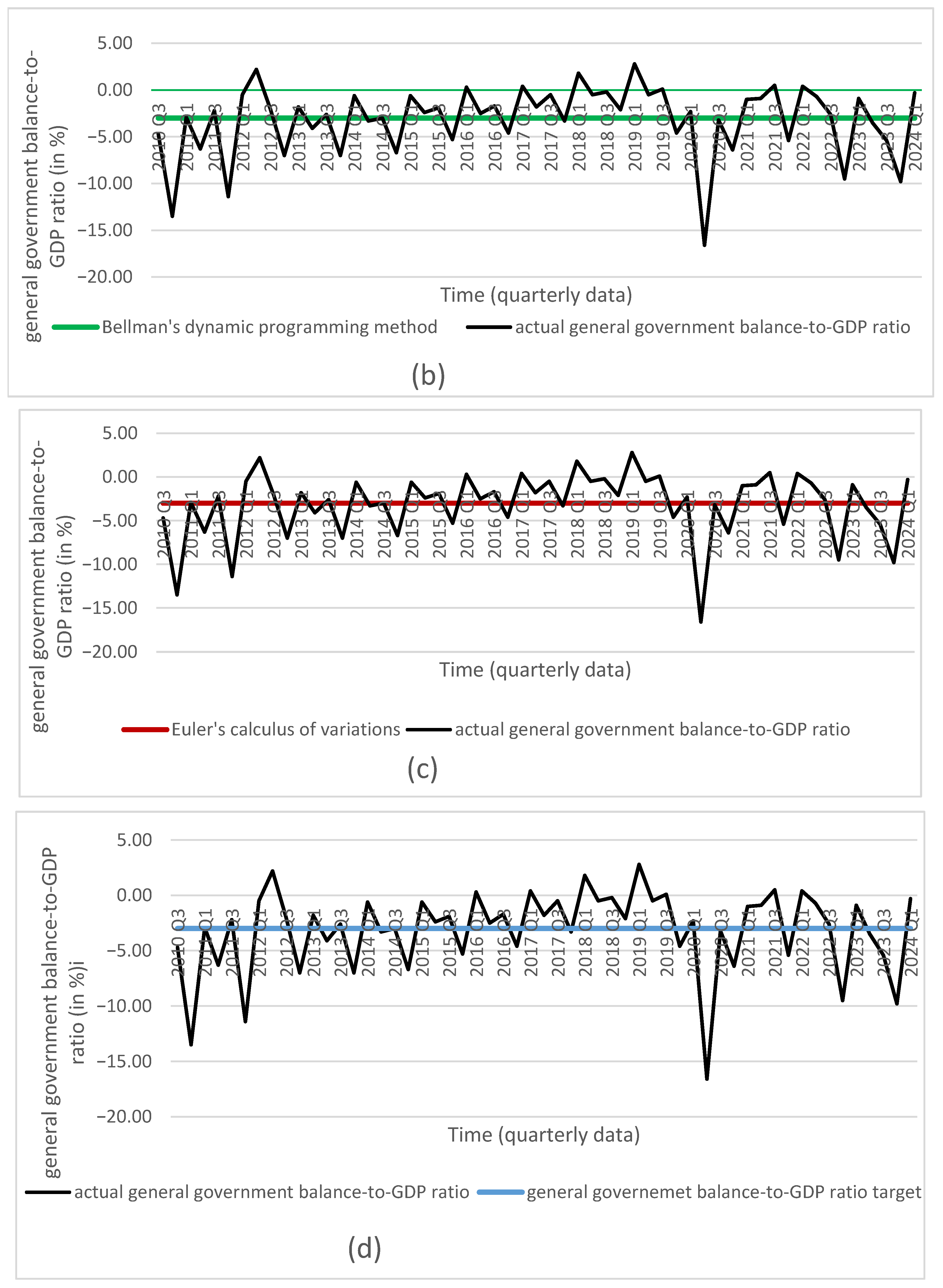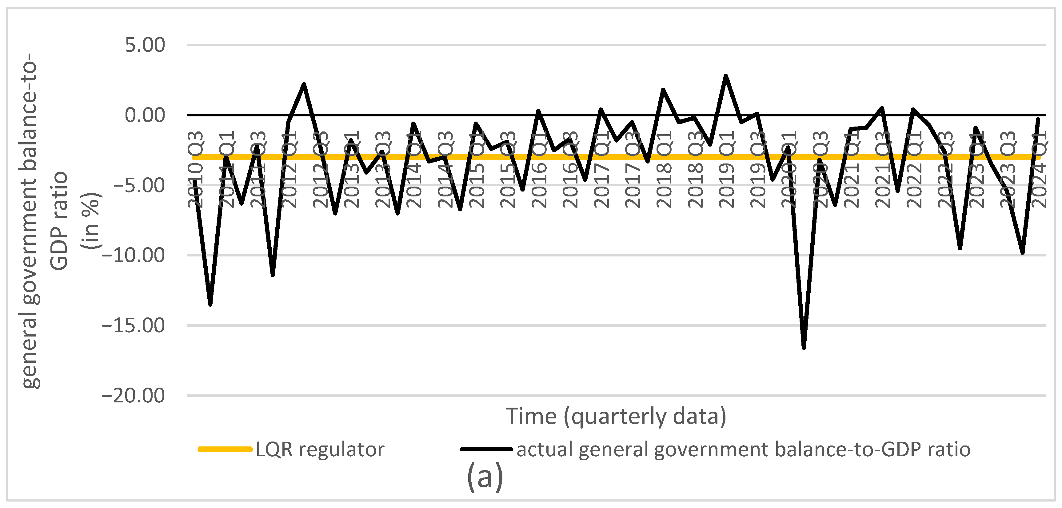 - General government balance-to-GDP ratio—from Q3 2010 to Q2 2012 based on ESA 95, and from Q3 2012 to Q1 2024 based on ESA 2010 (source: [25]).