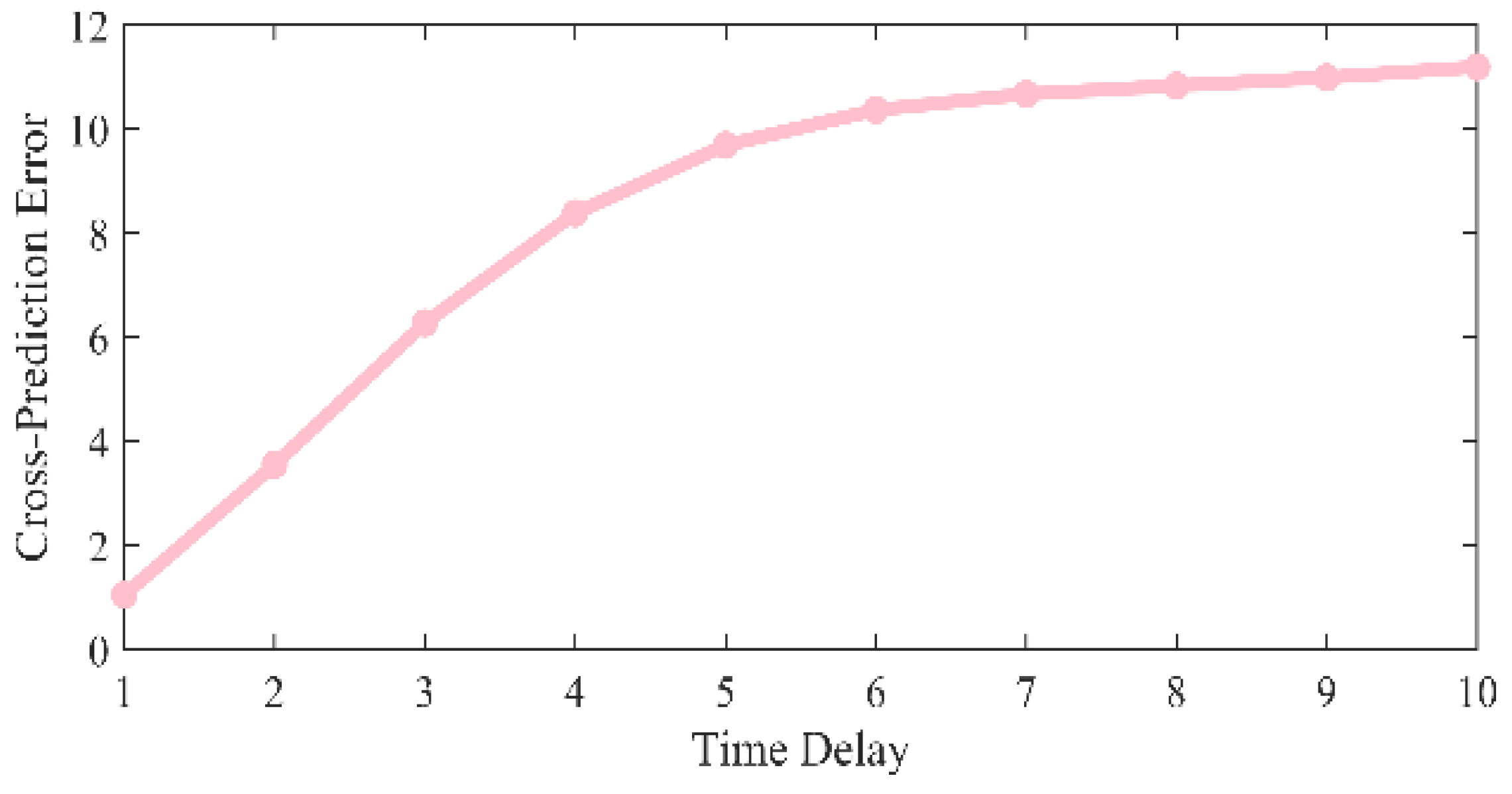 4.3.1. Determination of Time Delay—Minimum Cross Prediction Error (MCPE)