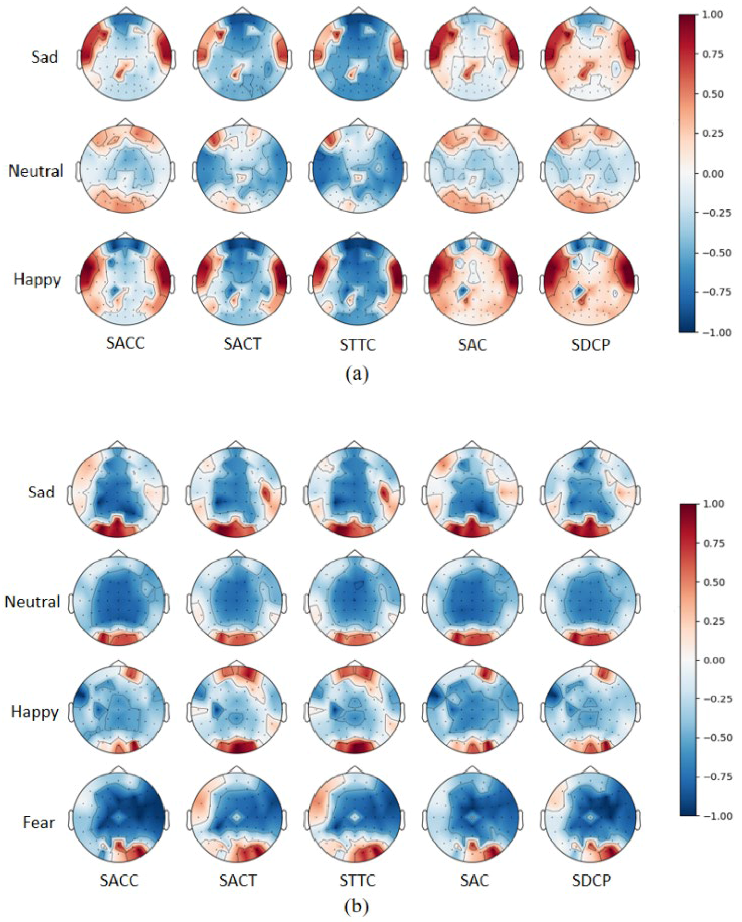- Quantitative analysis is conducted on the emotion-related topological features of normal-hearing people and hearing-impaired people. A cross-group 6-Class task is designed to explore the universality of the emotion recognition model and provide a direction for constructing a more compatible emotion analysis framework.