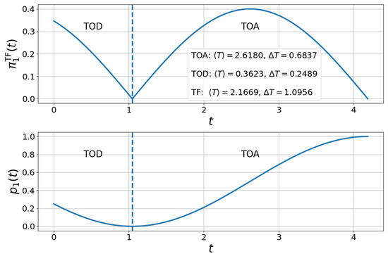 As we mentioned before, this distribution represents the TOA distribution (resp. the TOD distribution) if the derivative of is positive (resp. negative). Note that we can also use the Equation (6) to find the expression of the TF distribution considering a general initial state