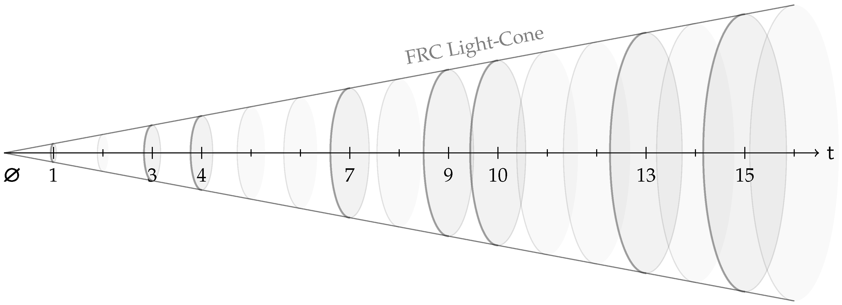 - Outlook. The algebraic obstruction we have identified has immediate consequences for how causal structure may be represented in finite settings. The passage to that restores the Lorentzian split also yields nontrivial null sets , which can be viewed as discrete analogues of light-cone structures. This suggests that finite-field shells equipped with square-class-separated quadratic forms could serve as models for spacetime in discrete or algebraic approaches to physics. Possible applications include finite-field analogues of Minkowski space in coding theory and simplified models for causal order in discrete quantum-gravity frameworks. In this sense, algebraic causality not only explains the emergence of Lorentzian signature in FRC but also provides a bridge toward broader investigations of finite geometries of space-time, including the formulation of Schrödinger-Dirac dynamics within the same finite-field framework, which we develop in the forthcoming work [10].