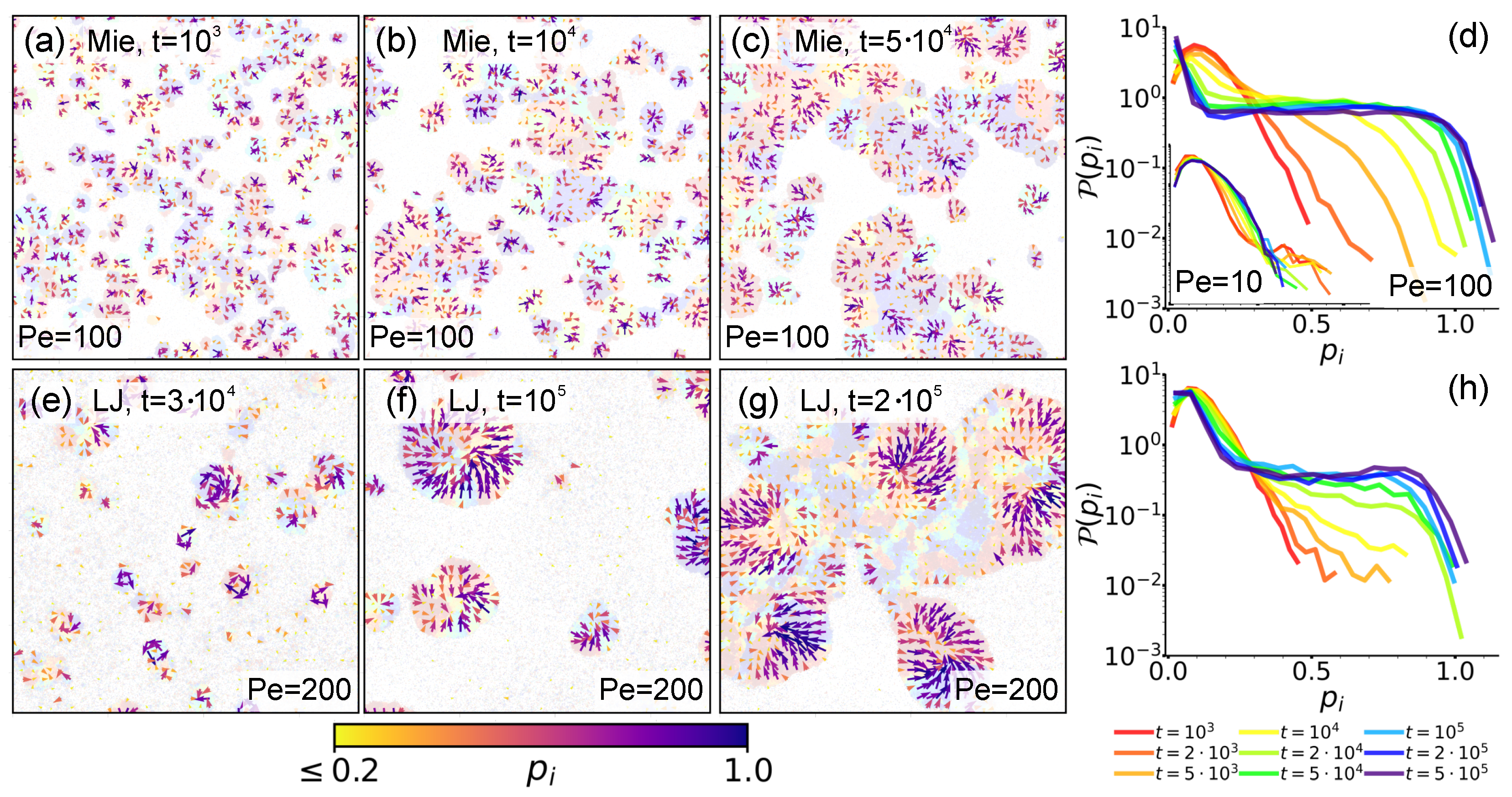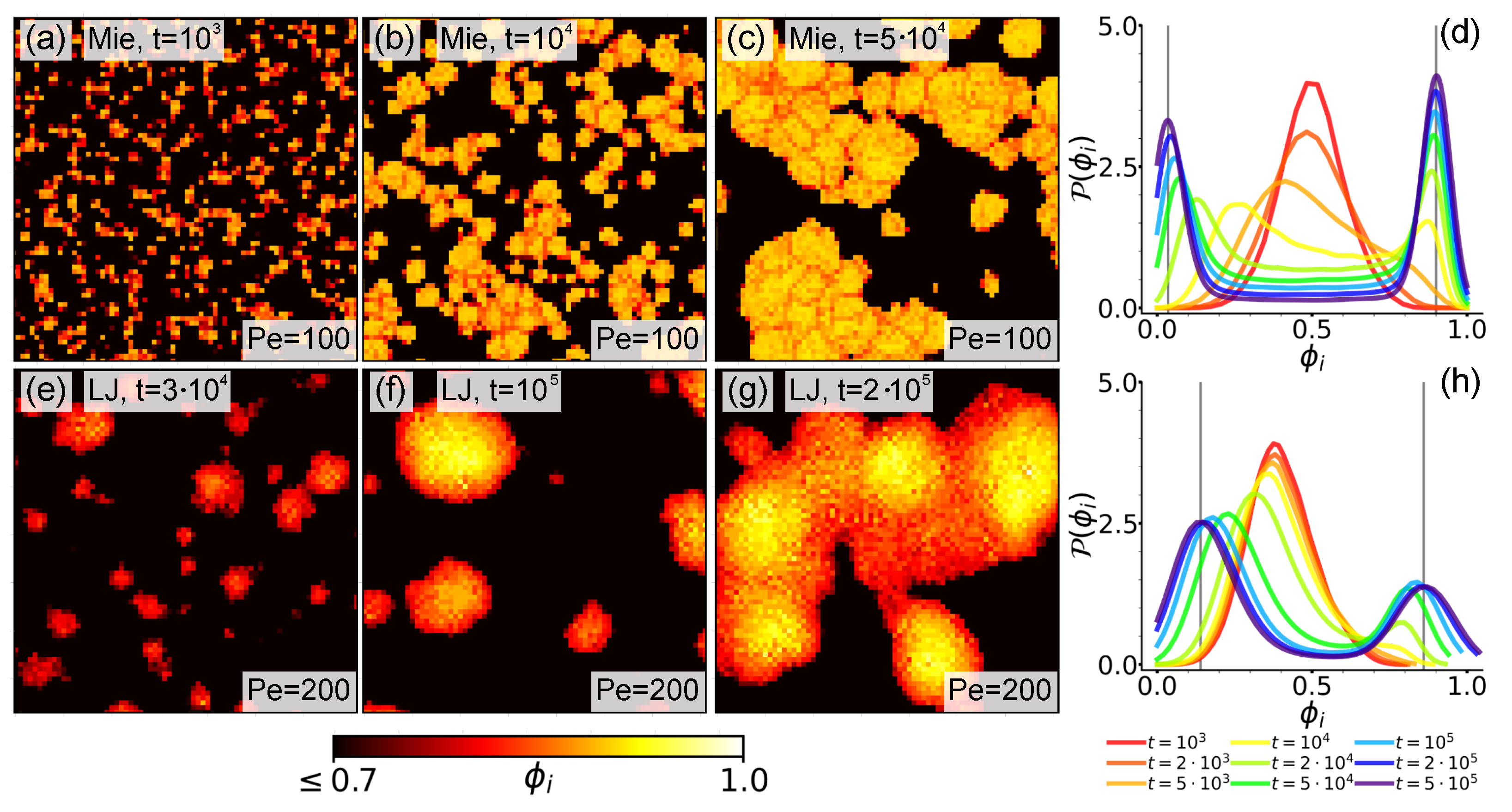 - Caporusso, C.B.; Digregorio, P.; Levis, D.; Cugliandolo, L.F.; Gonnella, G. Motility-induced microphase and macrophase separation in a two-dimensional active Brownian particle system. Phys. Rev. Lett. 2020, 125, 178004. [Google Scholar] [CrossRef]