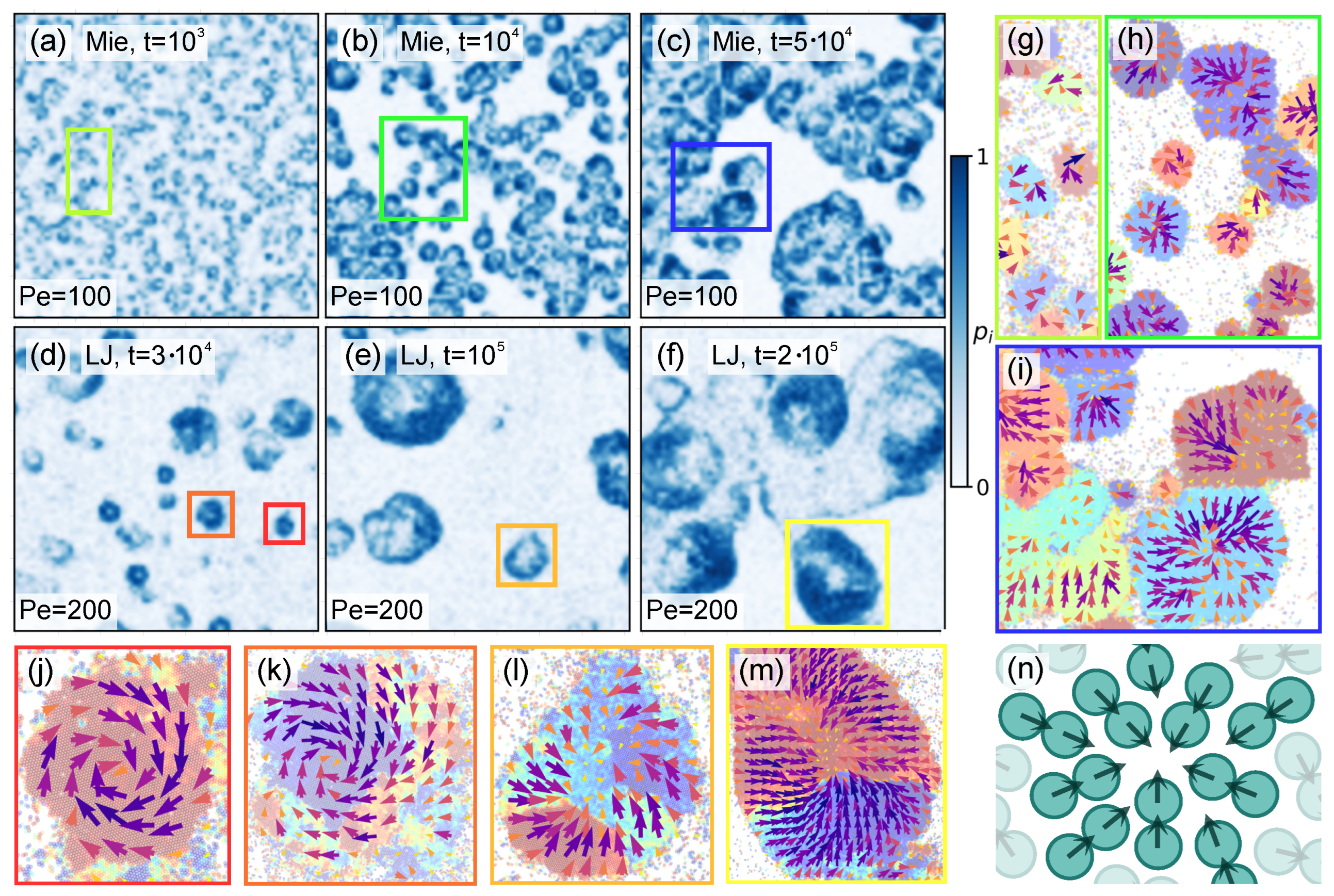 - Wang, X.; Chen, P.C.; Kroy, K.; Holubec, V.; Cichos, F. Spontaneous vortex formation by microswimmers with retarded attractions. Nat. Comm. 2023, 14, 56. [Google Scholar] [CrossRef] [PubMed]
