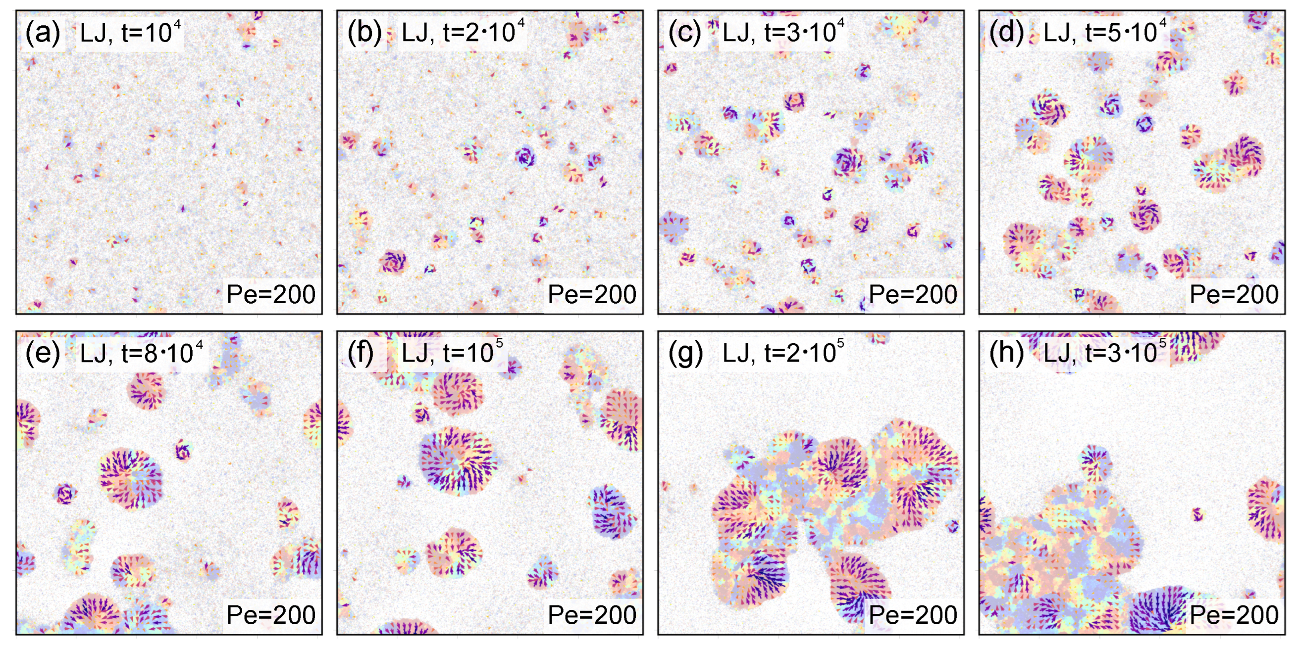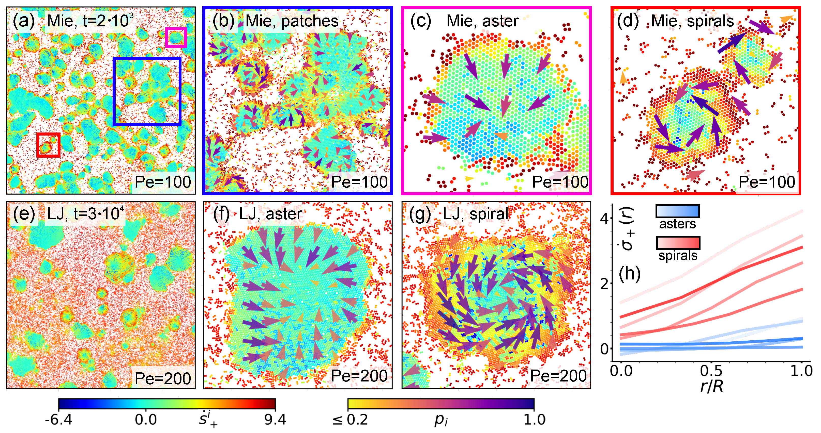 - Mondal, S.; Popli, P.; Sarkar, S. Coarsening dynamics of aster defects in model polar active matter. Soft Matter 2024, 21, 77. [Google Scholar] [CrossRef]