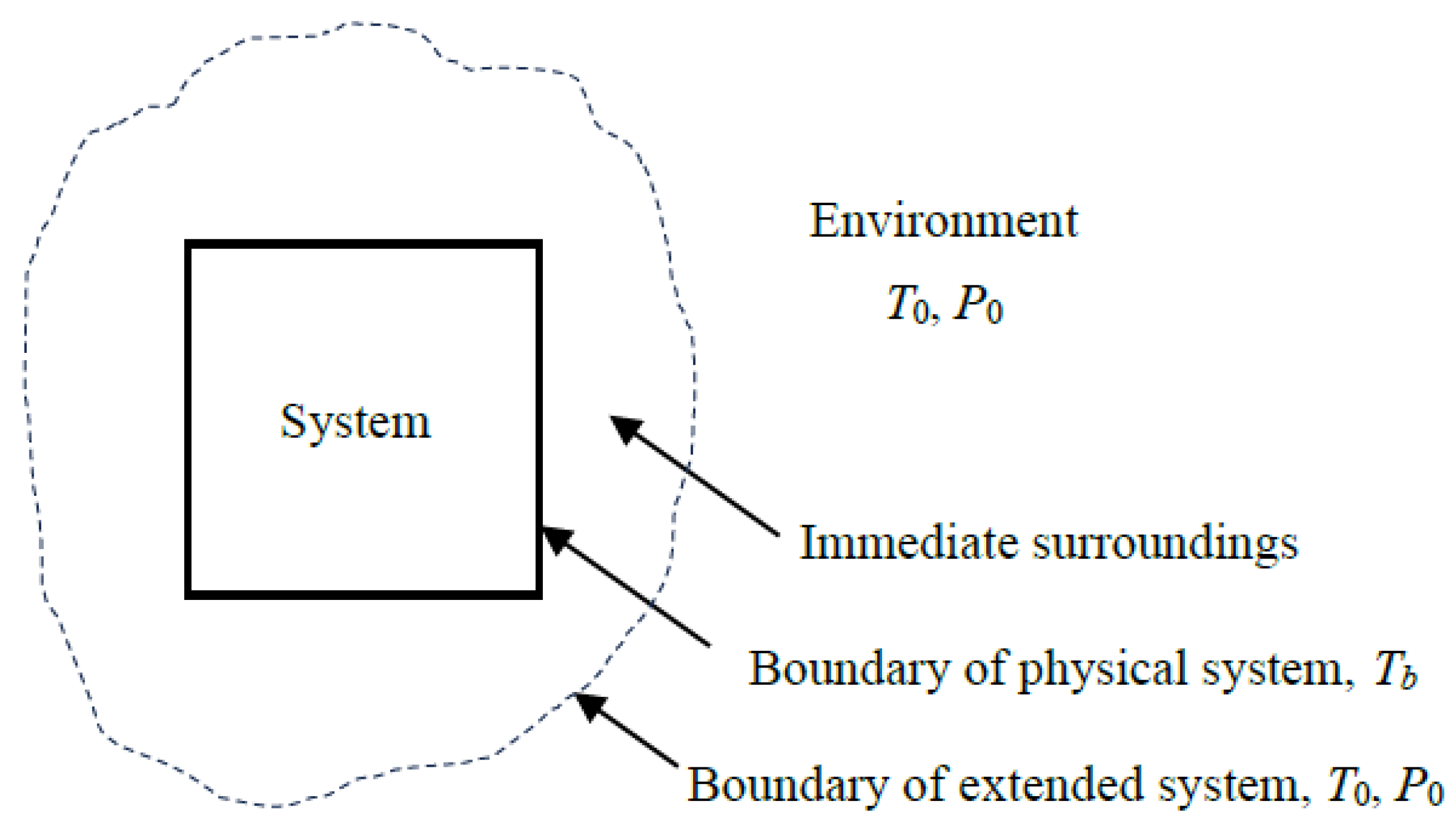 10]. In exergy calculations, it is understood that any heat, work, and mass interactions can occur only between the system and its environment. The word