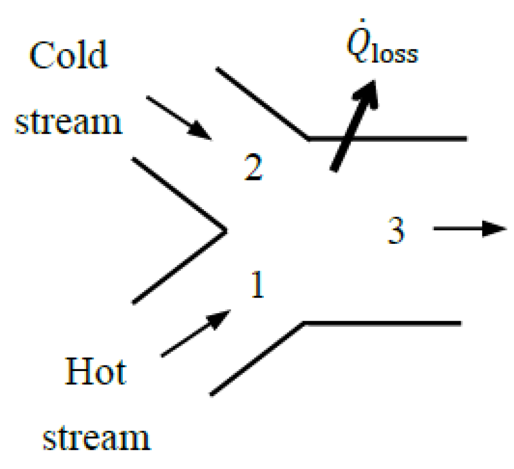 Figure 8), in which case the exergy of the cold stream increases at the expense of the hot stream. In this case, the exergy expended becomes the decrease in the exergy of the hot fluid, while the exergy recovered becomes the increase in the exergy of the cold fluid, plus