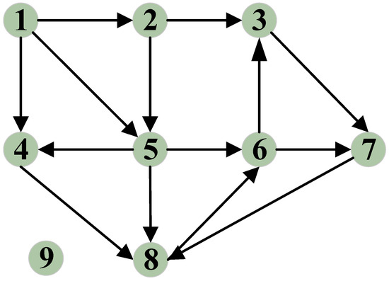 Second, we create a recommendation citation network based on the recommendation feedback mechanism. If recommender r provides reliable recommendation information for vehicle i, a directed edge is established between r and i. We then gather all the edges formed between vehicles and the vehicles connected by these edges to construct a directed graph, which we refer to as the recommendation citation network. This network represents the references to recommendation information between vehicles and can be expressed as G = (V, R). Here, V is the set of vehicle pairs formed by vehicles citing recommendation information and the providers of this information, and R represents the set of directed edges. As depicted in Figure 6, a directed edge exists between nodes 6 and 7 because node 7 cites recommendation information provided by vehicle 6. Conversely, node 9 is currently isolated as its recommendation information has not been cited by other nodes.