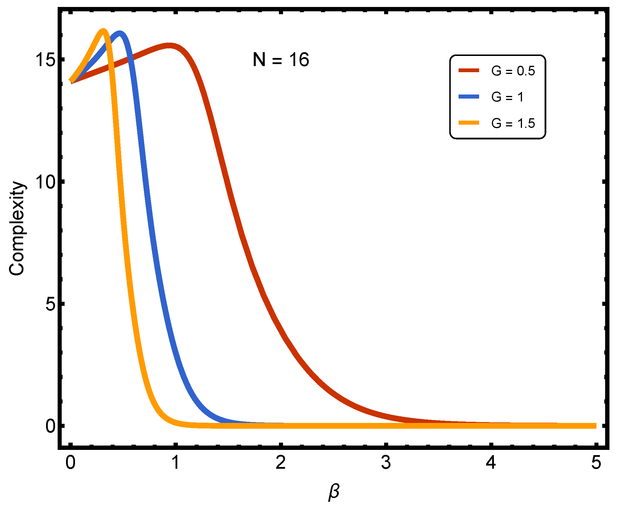 While these studies address density- and temperature-driven pairing phenomena in extended systems and provide key insights into macroscopic condensation, our contribution differs in crucial respects. First, we consider finite, few-fermion ensembles (two energy levels, spin–flip interaction) and focus on information-theoretic observables (entropy and statistical complexity). Second, the control parameter in our work is the microscopic interaction’s strength G (at a fixed inverse temperature ) rather than particle density or chemical potential. We illuminate the finite-size effects tied to level rearrangements and the discrete spectrum of the model. Accordingly, rather than reproducing the BEC–BCS crossover physics in the thermodynamic limit, our present results will offer a complementary, finite-N perspective: they will reveal how many-body sensitivity and informational content are reorganized as the interaction is tuned.