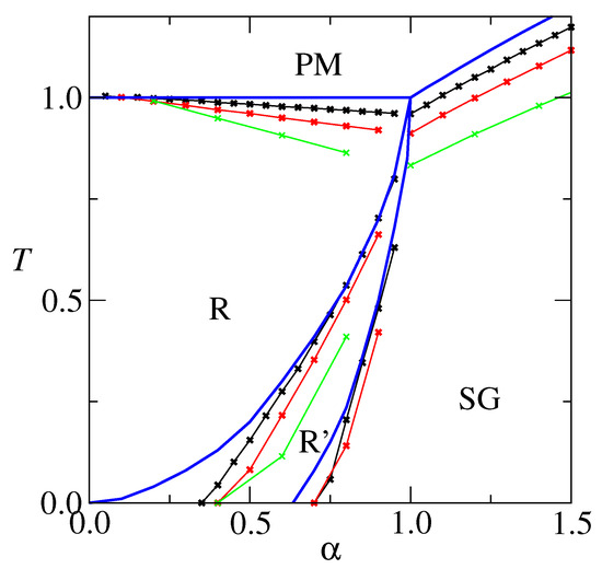 - Viana, L.; Bray, A.J. Phase diagrams for dilute spin glasses. J. Phys. C Solid State Phys. 1985, 18, 3037. [Google Scholar] [CrossRef]