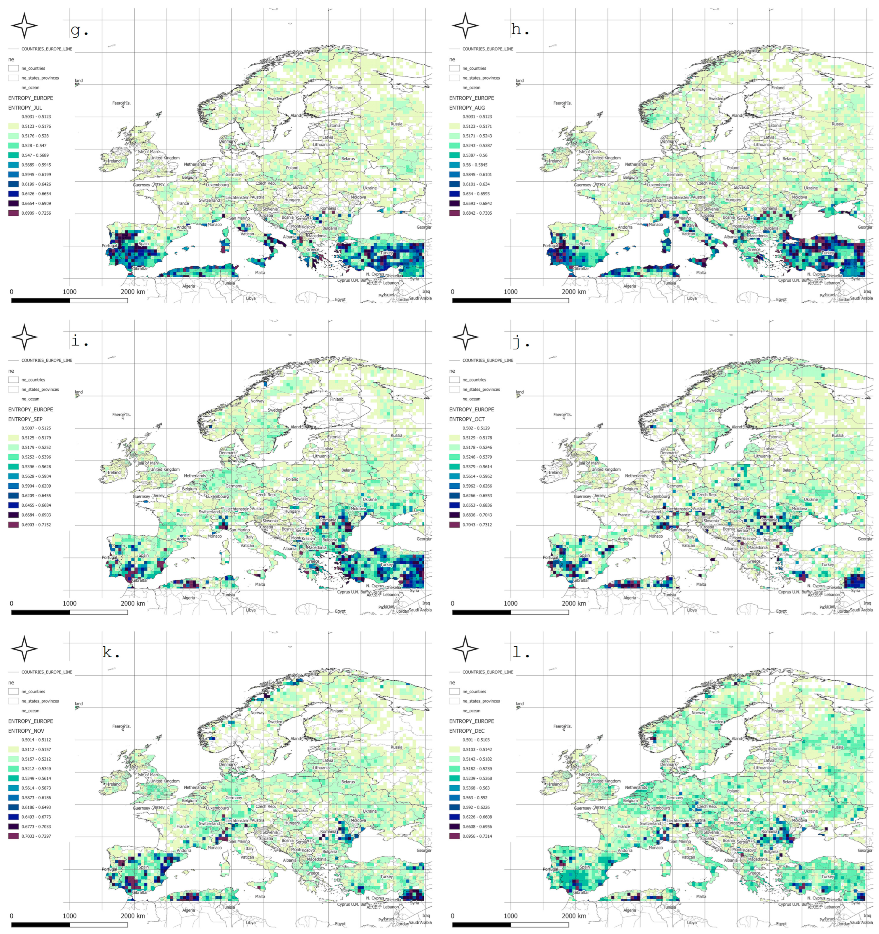 33], who demonstrated that spatial entropy increases in regions experiencing intensified seasonal variability—a pattern also observed in our results for Central and Southeastern Europe.