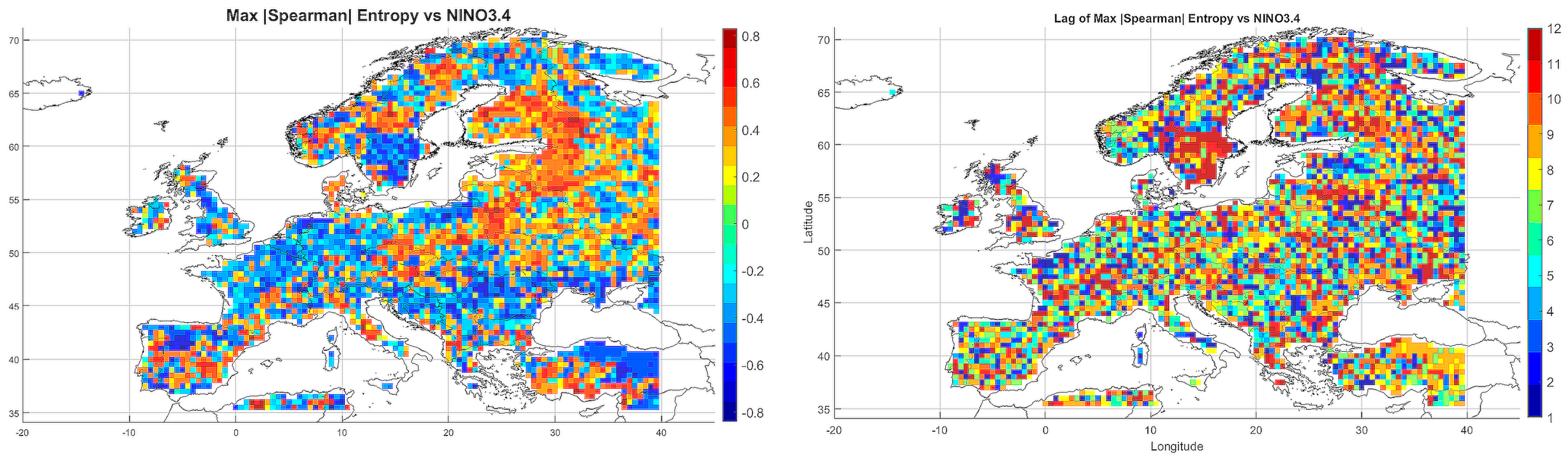 ENSO (El Niño–Southern Oscillation)—particularly during El Niño phases, an increase in entropy source activity is observed over southern Europe, accompanied by intensified extreme precipitation.