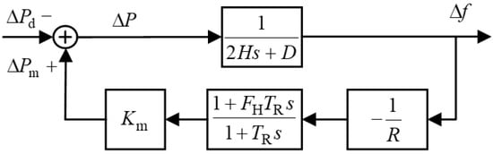 where denotes the inertia time constant; and represent the variations in mechanical power and electromagnetic power, respectively; and is the damping coefficient.