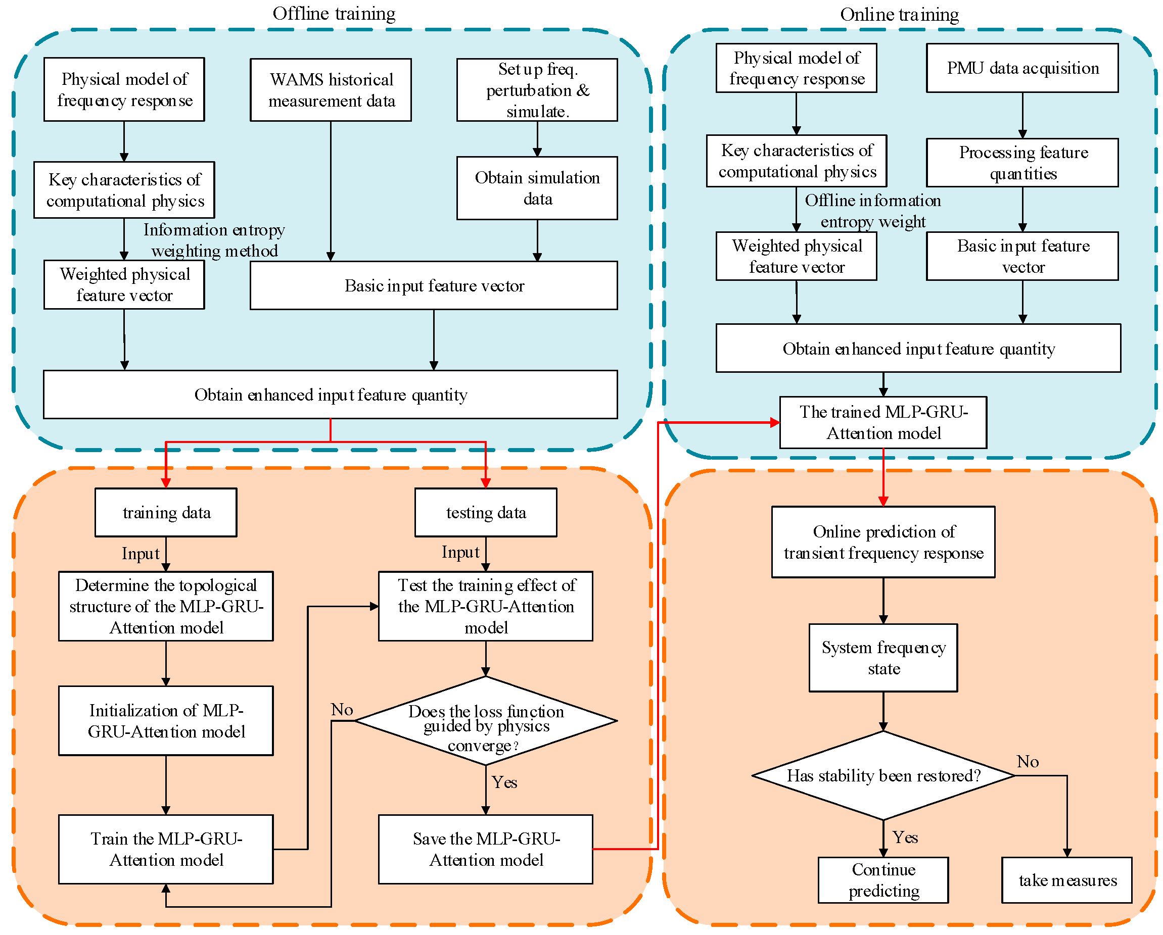 - Li, L.; Wu, J.; Zhao, P.; Li, B.; Shi, F.; Wang, Y. Online transient frequency safety prediction machine of power system based on time-feature attention module. IEEE Trans. Power Syst. 2022, 38, 3952–3964. [Google Scholar] [CrossRef]