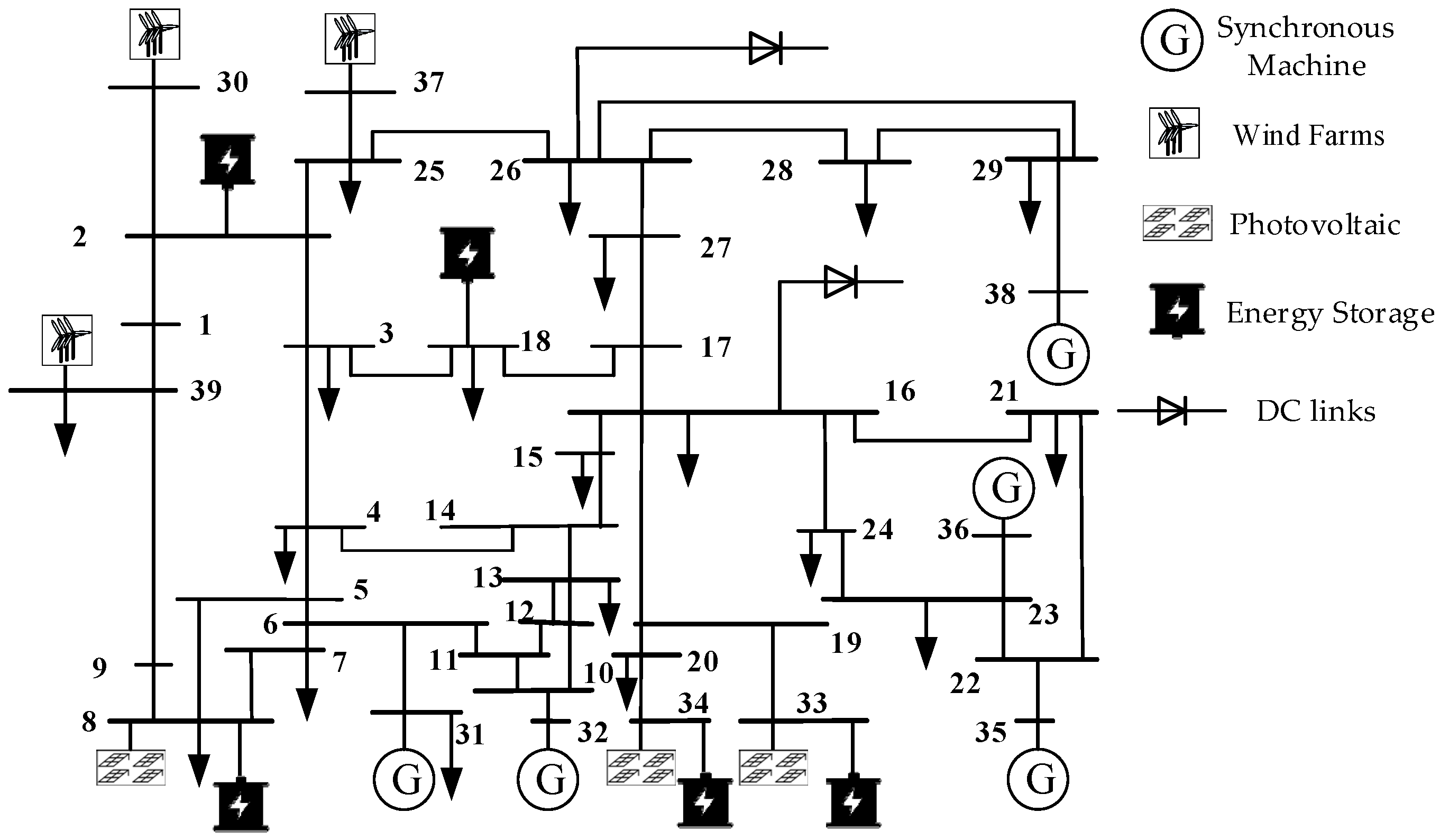 - Meng, L.; Zafar, J.; Khadem, S.K.; Collinson, A.; Murchie, K.C.; Coffele, F.; Burt, G.M. Fast Frequency Response From Energy Storage Systems—A Review of Grid Standards, Projects and Technical Issues. IEEE Trans. Smart Grid 2020, 11, 1566–1581. [Google Scholar] [CrossRef]