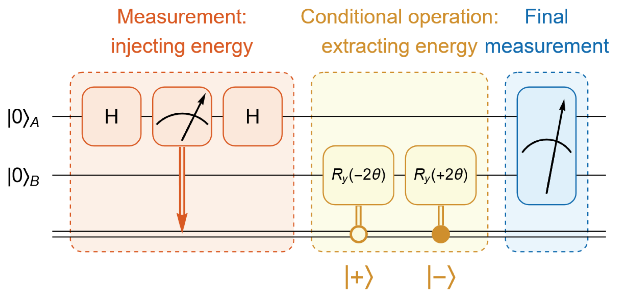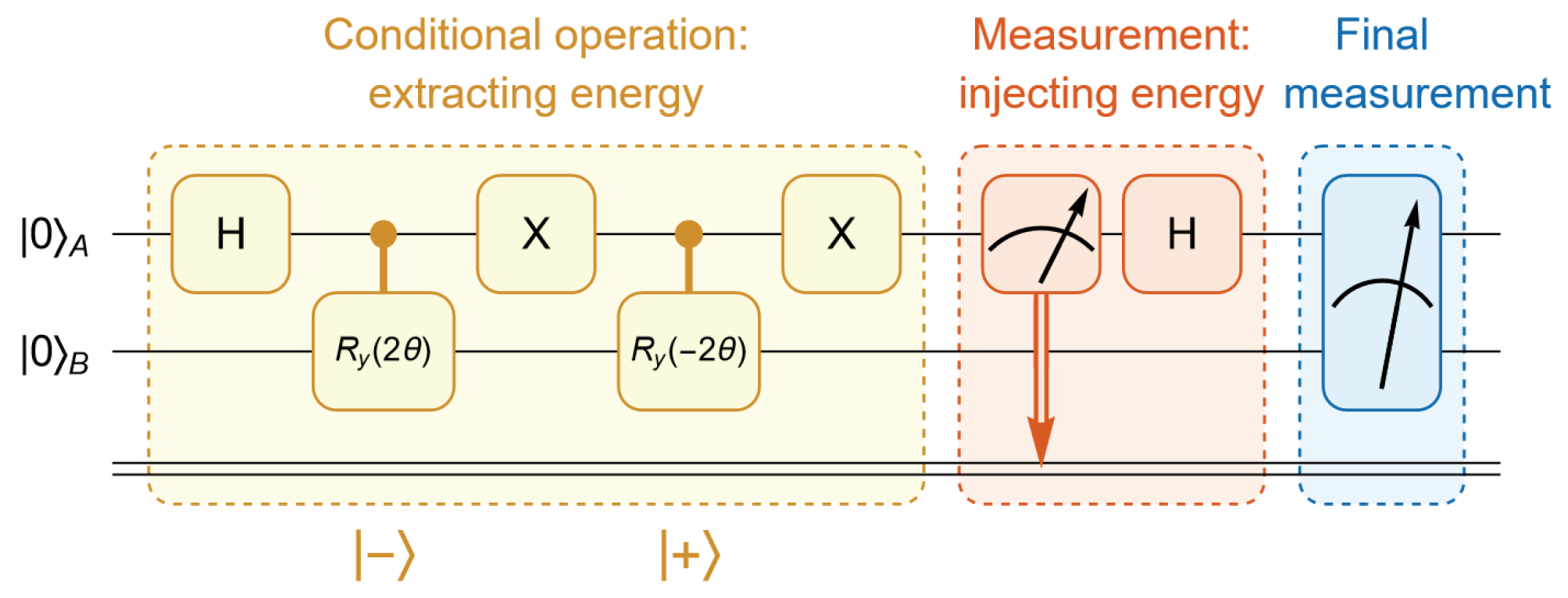 For Bob to access the inaccessible energy within Equation (4), the QET protocol requires Alice to communicate her measurement outcome to Bob, based on which Bob applies a conditional operator,