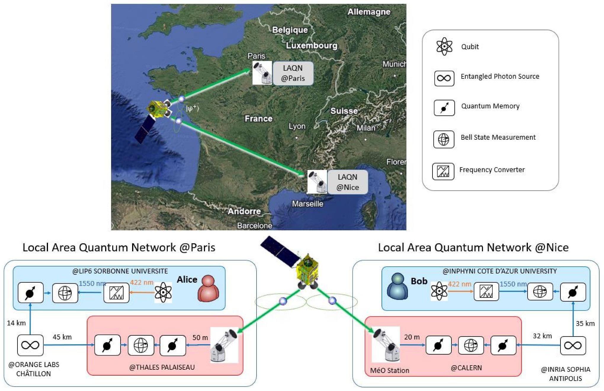 - A BSM device, with two quantum memories and an optical ground station (MéO [32]), at Calern.