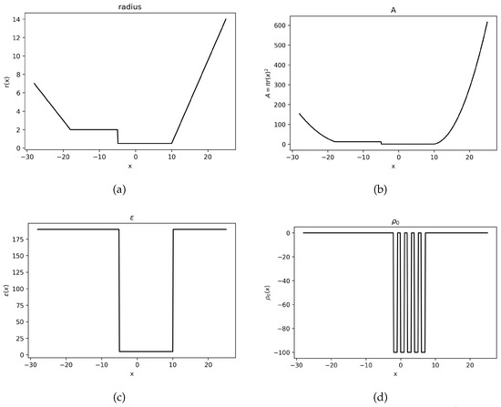 The cross-section ion channel area, electric permittivity, and permanent fixed charge density take the following values, respectively. These parameter values can be seen graphically in Figure 1.