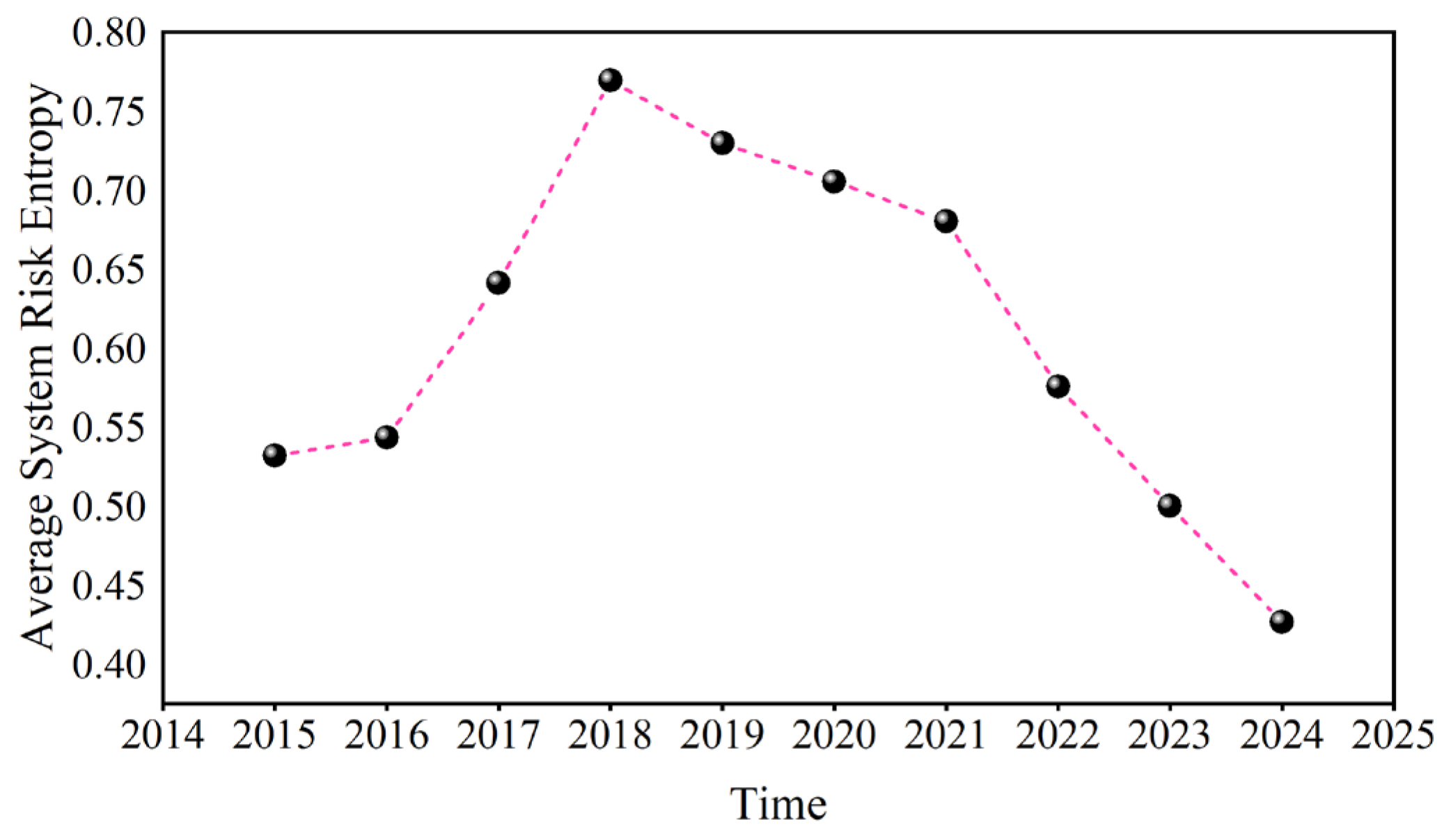 Figure 25 shows the annual average value of system risk entropy, which first tends to increase but then decreases. Since 2018, system risk entropy has continued to rise, indicating that systematic risk has been rising since the China–US trade war in 2018.