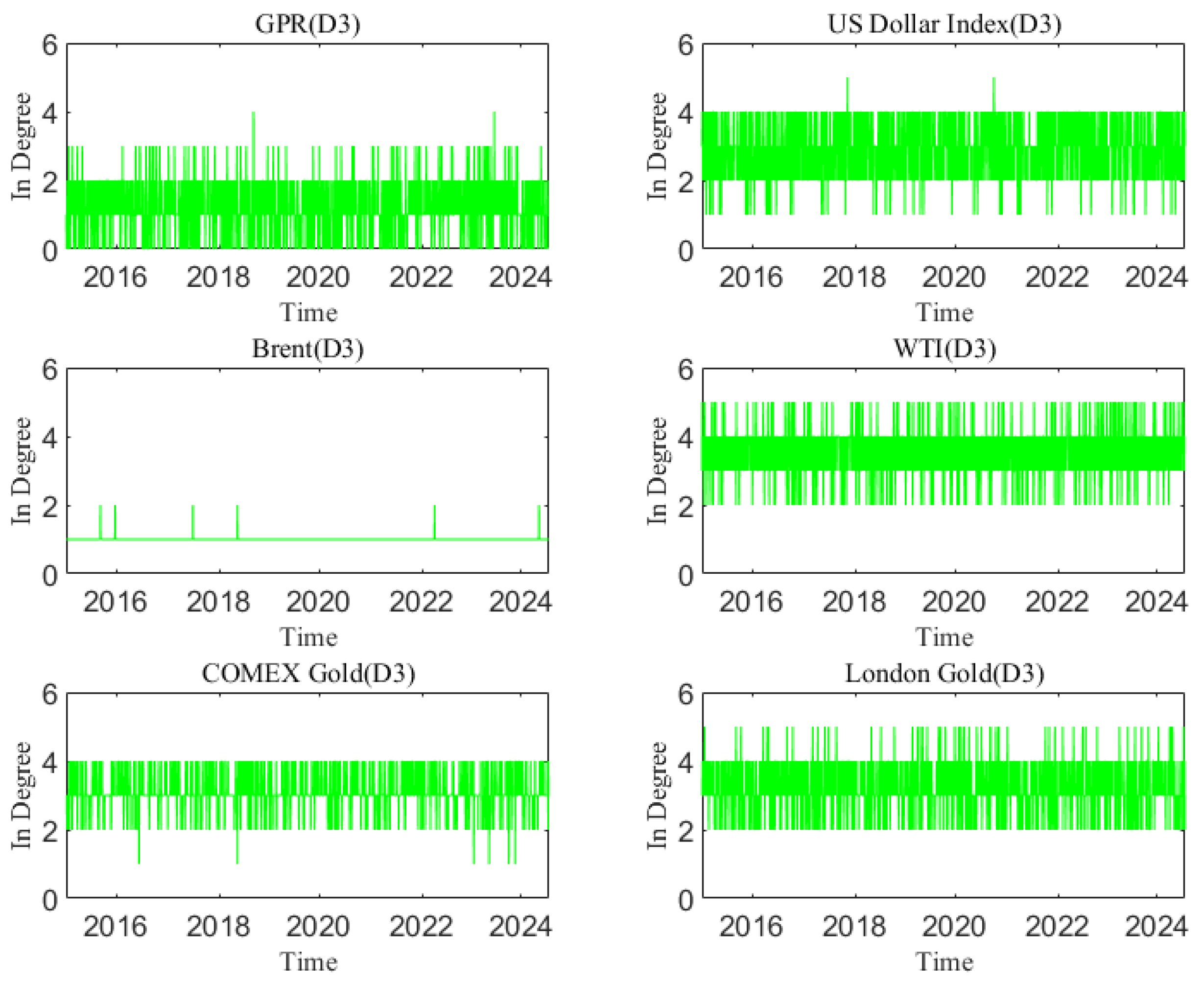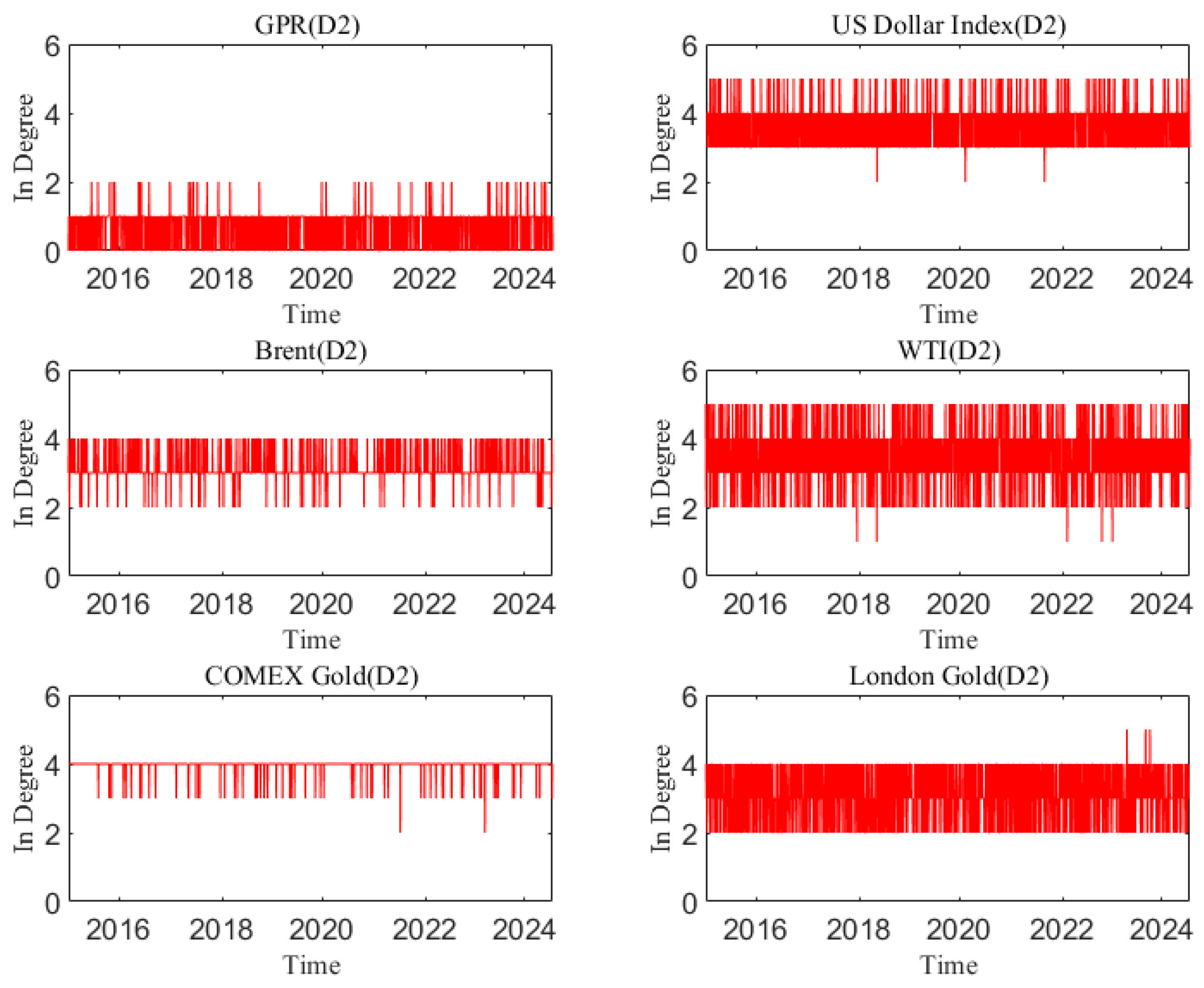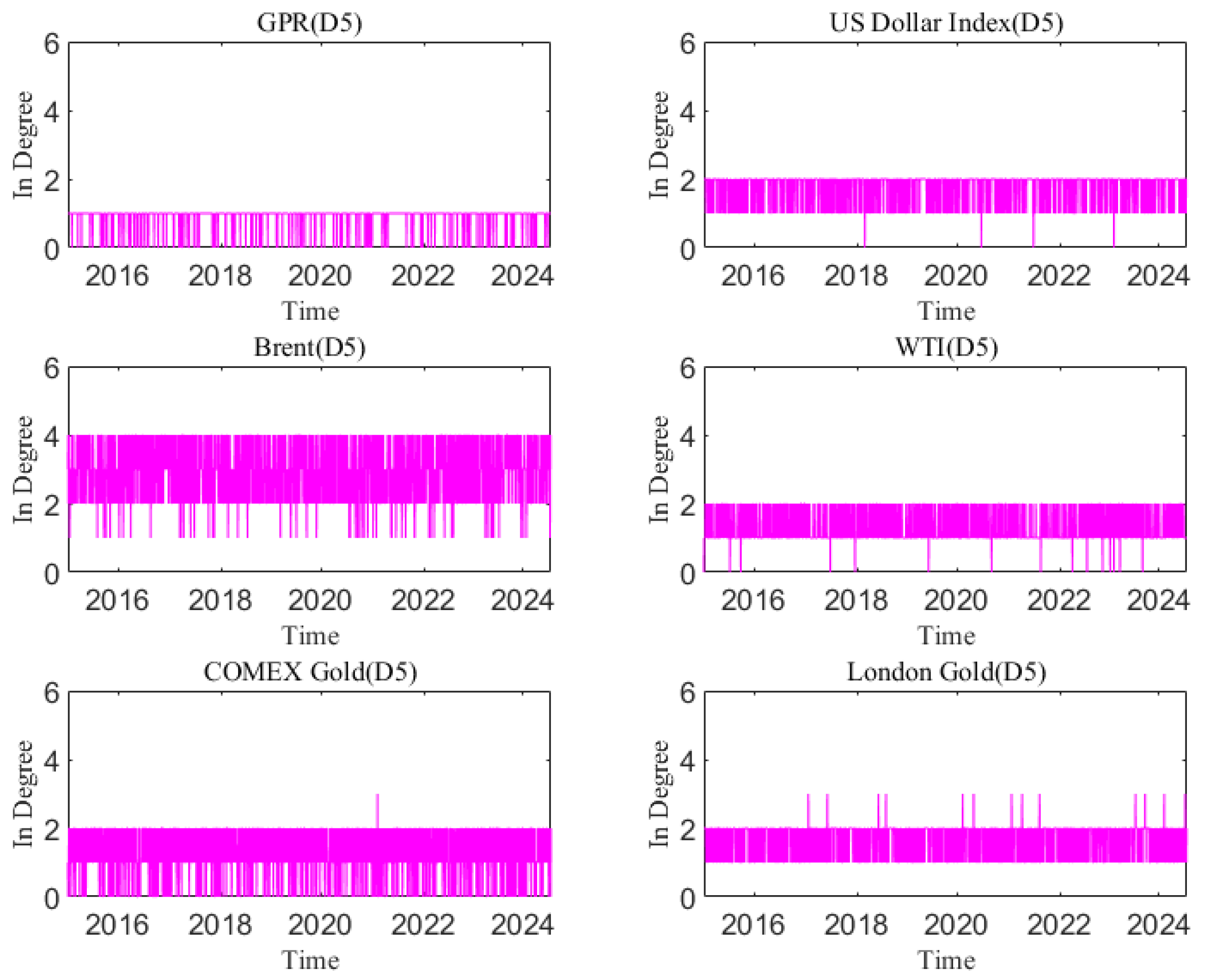 Figure 7 shows the dynamic in degree for each variable at the D1 time scale.