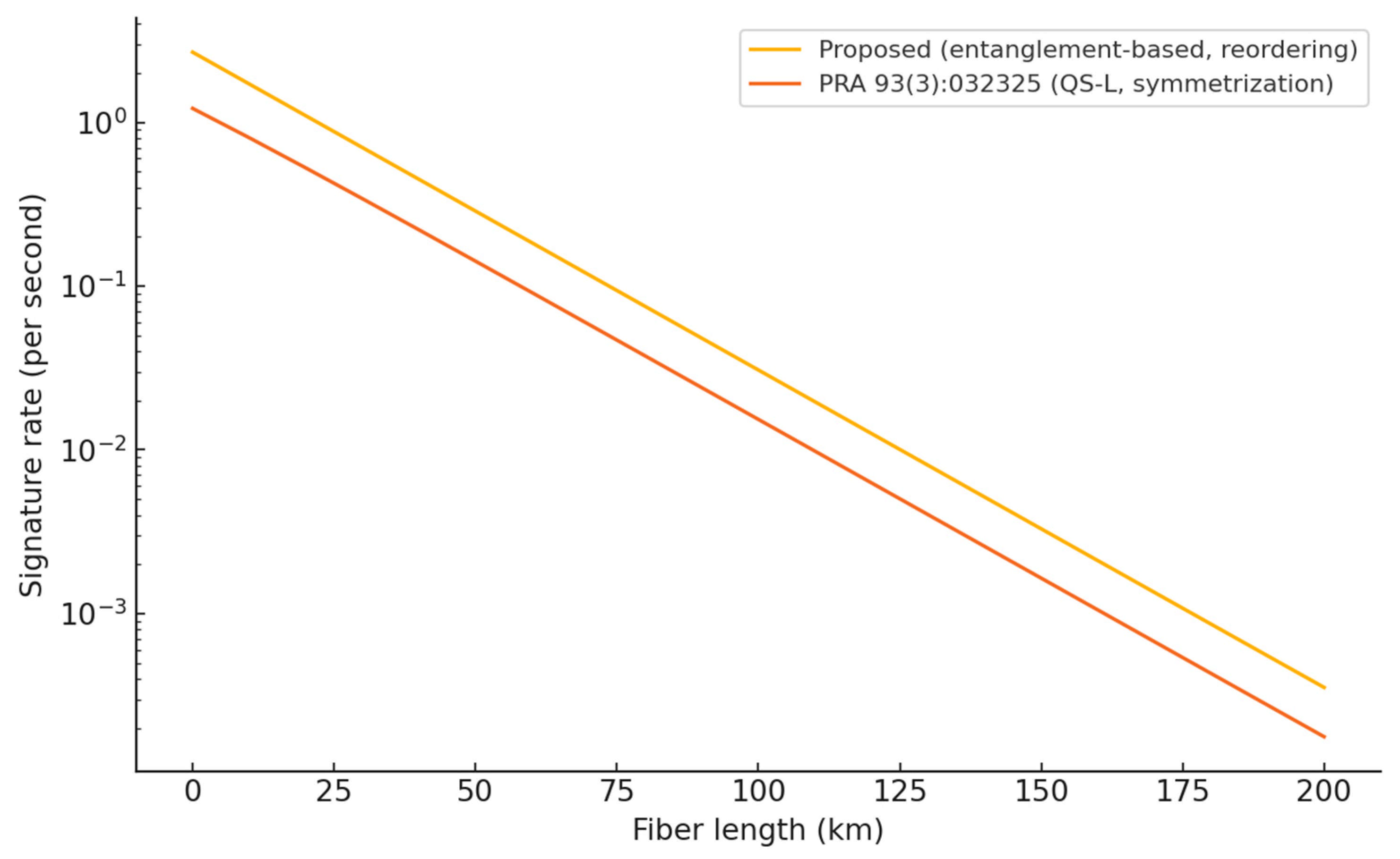 - Du, Y.; Li, B.-H.; Hua, X.; Cao, X.-Y.; Zhao, Z.; Xie, F.; Zhang, Z.; Yin, H.-L.; Xiao, X.; Wei, K. Chip-Integrated Quantum Signature Network over 200 km. Light Sci. Appl. 2025, 14, 108. [Google Scholar] [CrossRef]