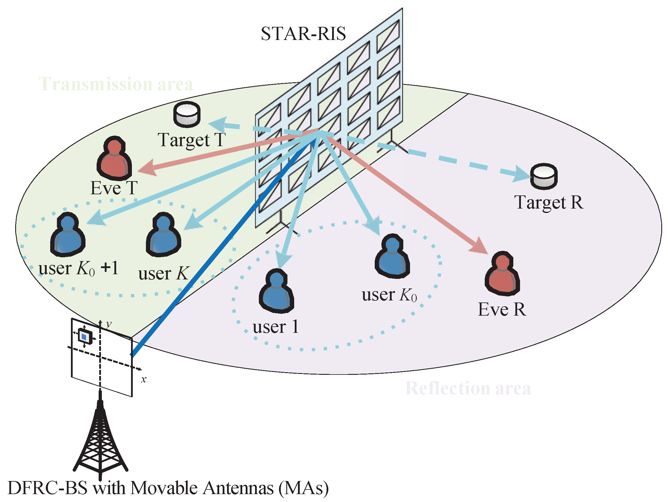 Section 2, we present the system model for the movable antenna and STAR-RIS-aided ISAC system. And we formulate the optimization problem for maximizing the minimum secrecy rate. In
