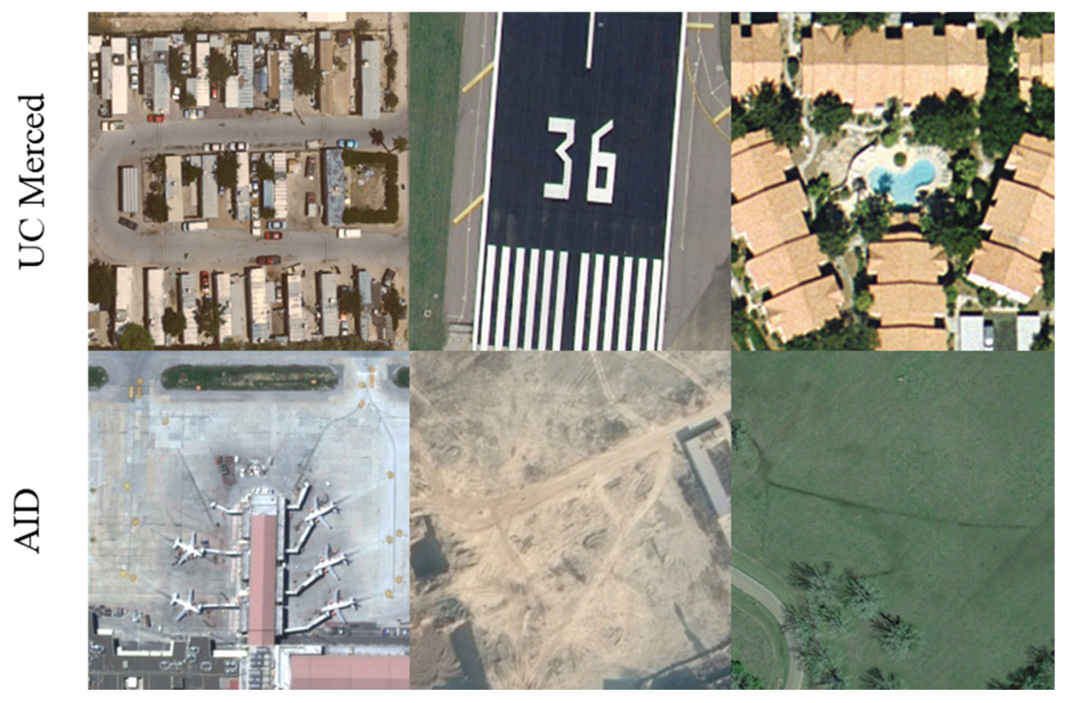 - Xia, G.-S.; Hu, J.; Hu, F.; Shi, B.; Bai, X.; Zhong, Y.; Zhang, L.; Lu, X. AID: A Benchmark Data Set for Performance Evaluation of Aerial Scene Classification. IEEE Trans. Geosci. Remote Sens. 2017, 55, 3965–3981. [Google Scholar] [CrossRef]