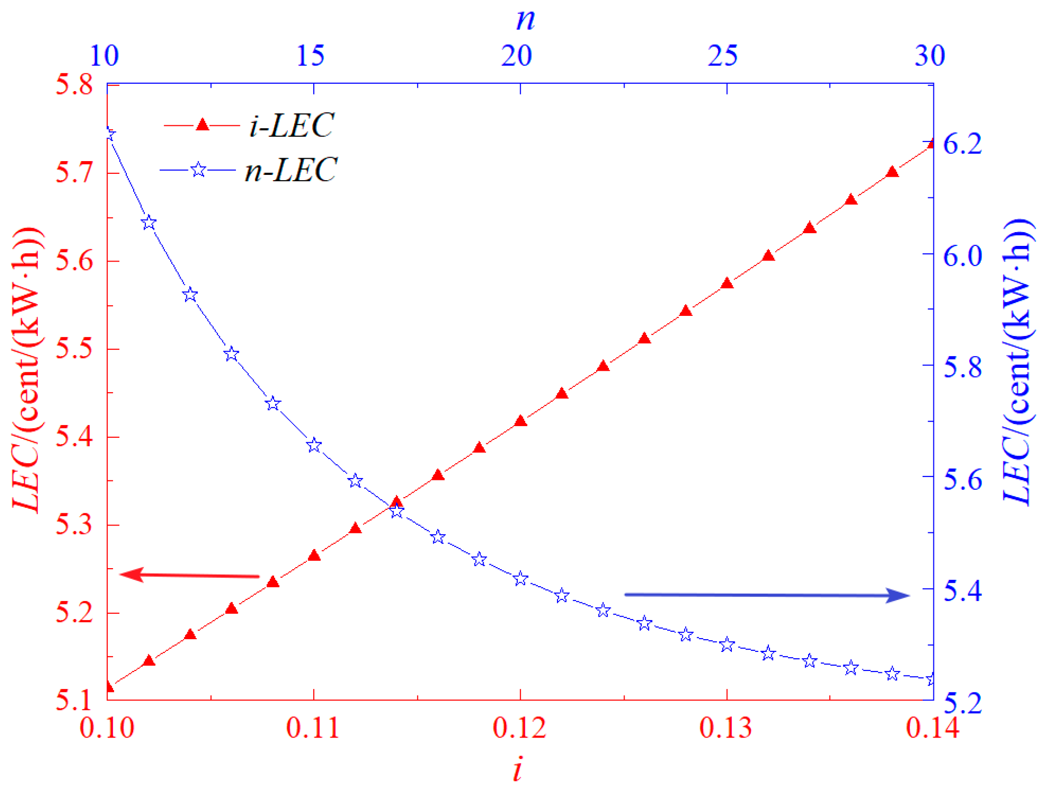 LEC rises with the increase in the interest rate, while it drops as the service life extends. This pattern also validates the accuracy of the economic model.
