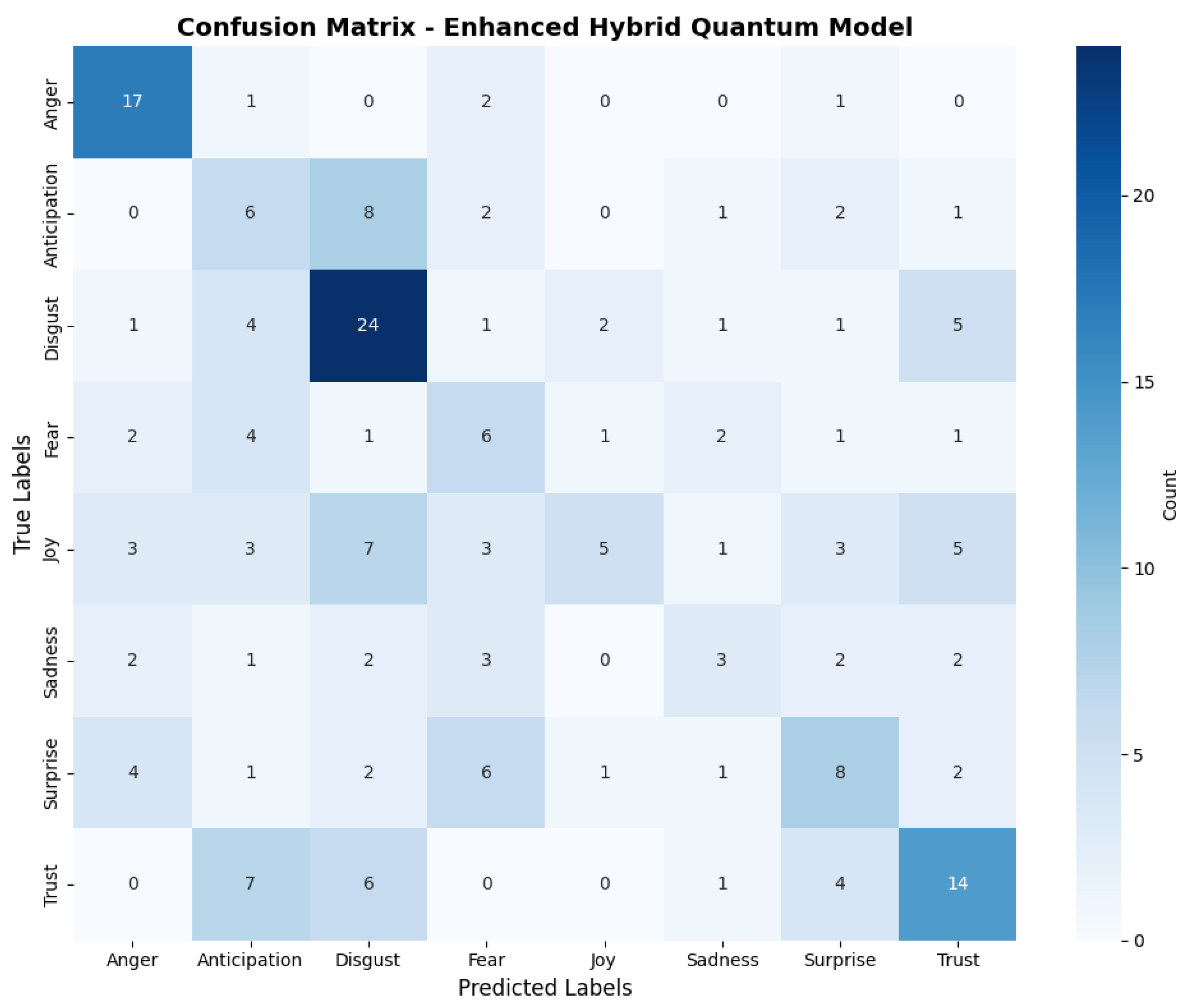 - Solution Extraction: Measure final state in computational basis; select bitstring mapping to emotion label.