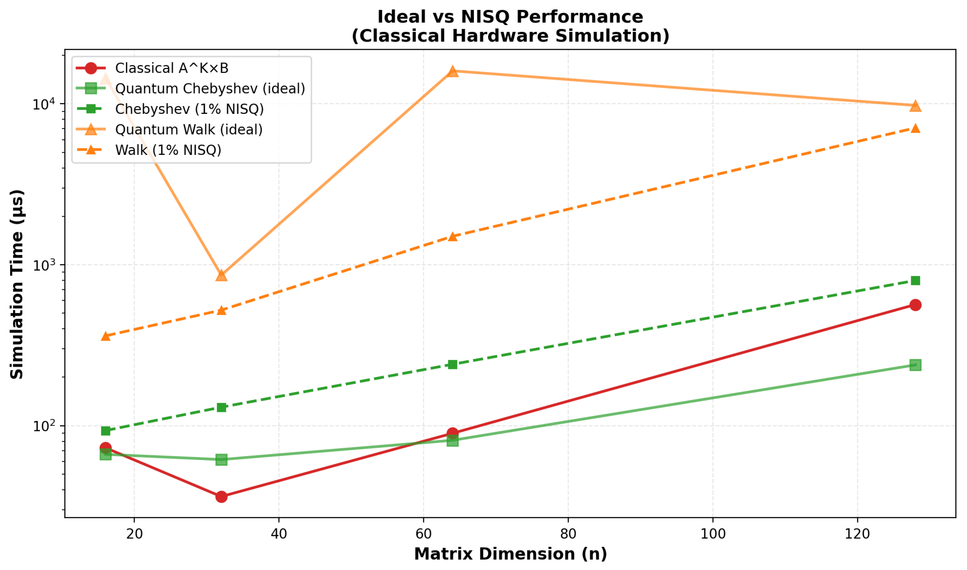 - Noise: For NISQ , QSVT with depth (BE) is markedly more robust than Chebyshev or walks, which require larger degrees/steps.