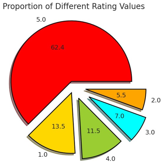 There are originally 71,497 non-null raw instances in the Amazon Magazine Subscriptions dataset. The reviews are accompanied by a rating ranging from 1 to 5, indicating how customers evaluate the product. Figure 3 shows the distribution of the data across the rating values.