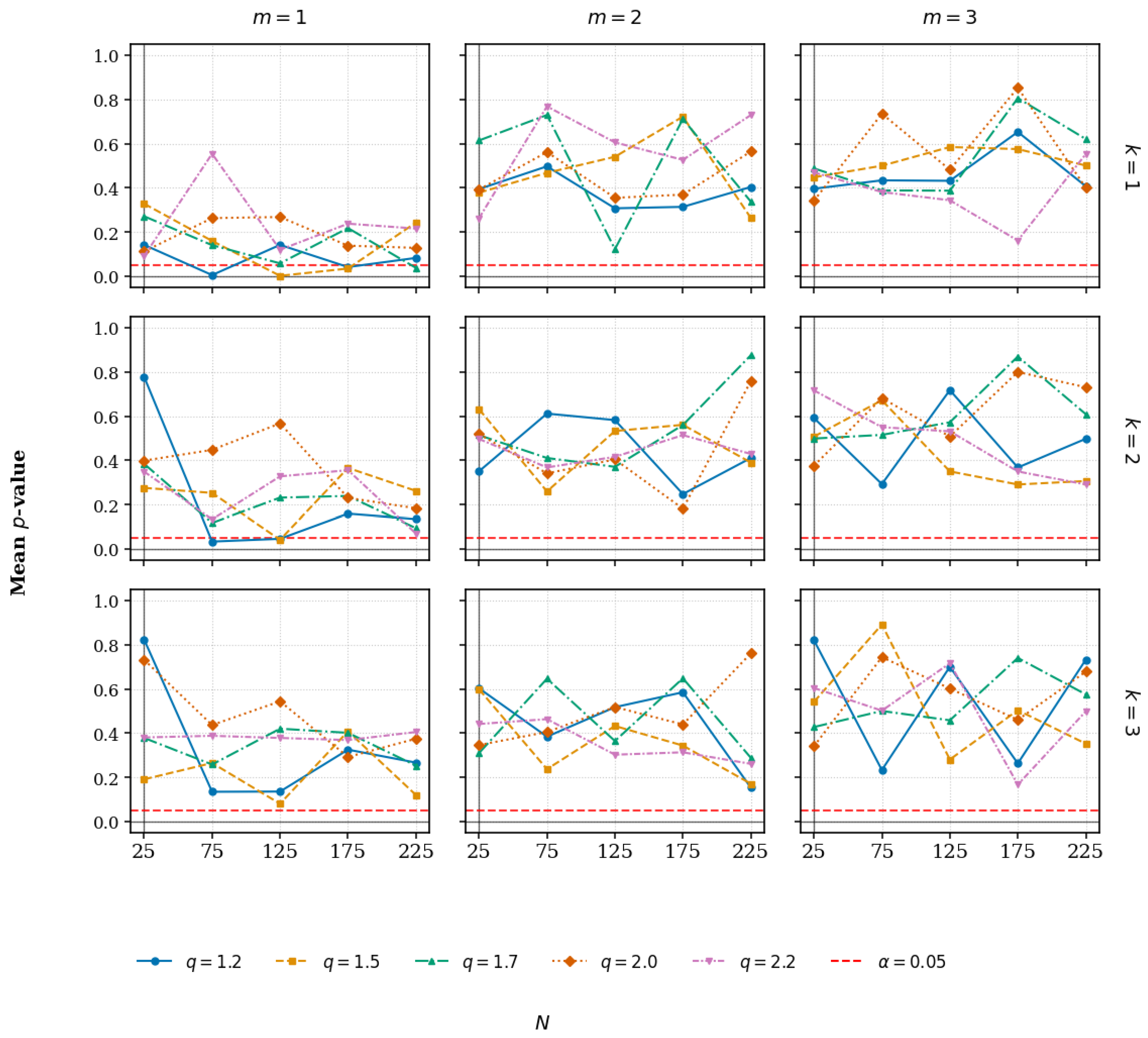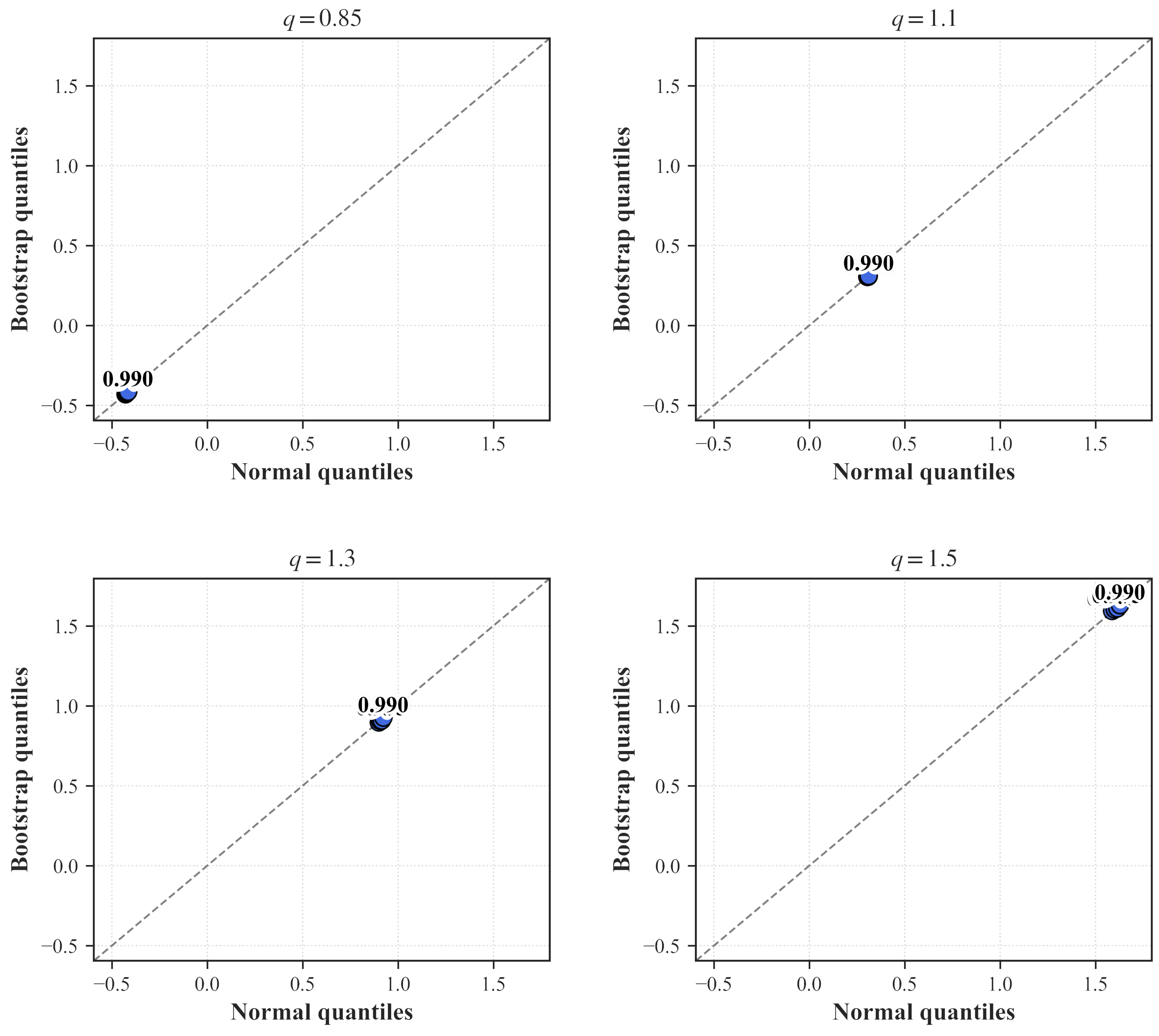 - For , with , definewhere denotes the maximum Tsallis entropy under the assumed model.