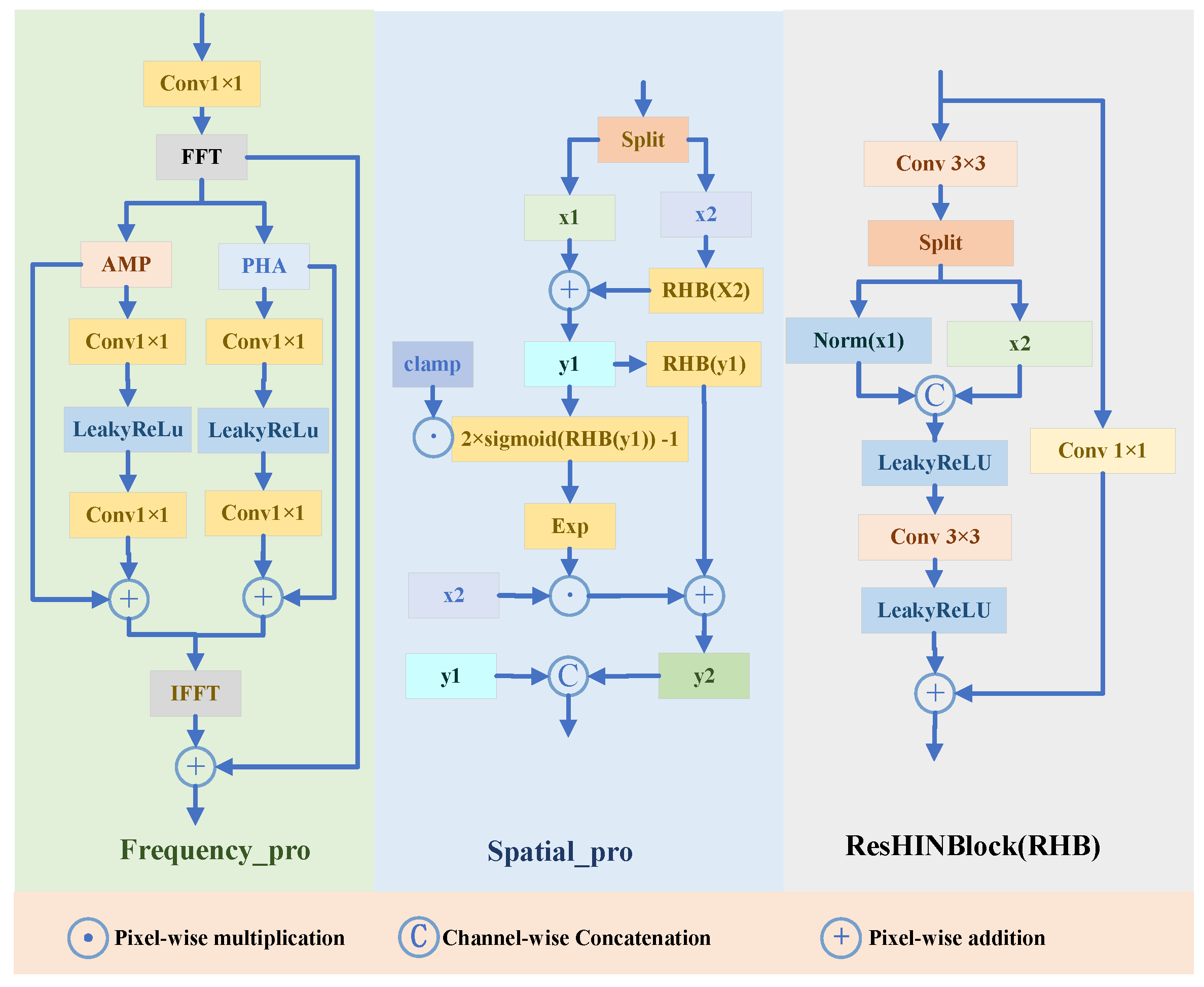 - Wang, C.; Wu, H.; Jin, Z. FourLLIE: Boosting Low-Light Image Enhancement by Fourier Frequency Information. In Proceedings of the 31st ACM International Conference on Multimedia, MM 2023, Ottawa, ON, Canada, 29 October–3 November 2023; pp. 7459–7469. [Google Scholar] [CrossRef]