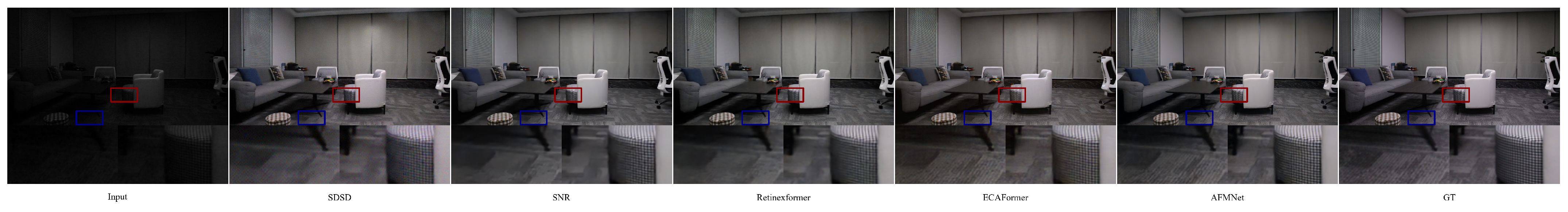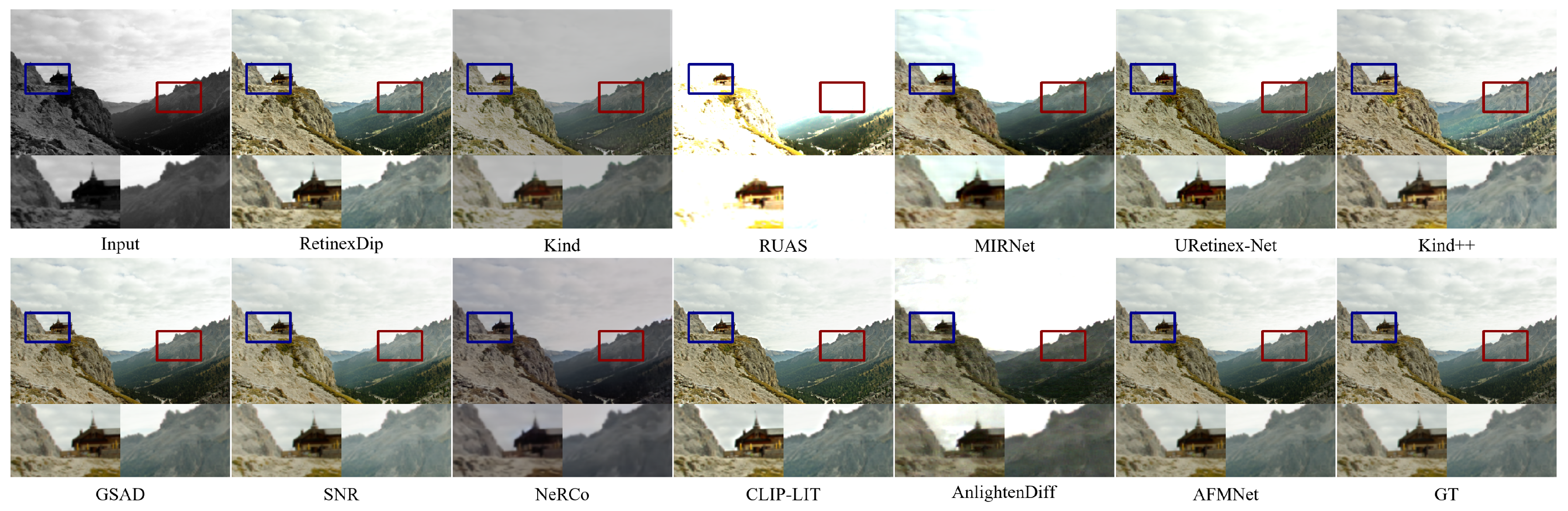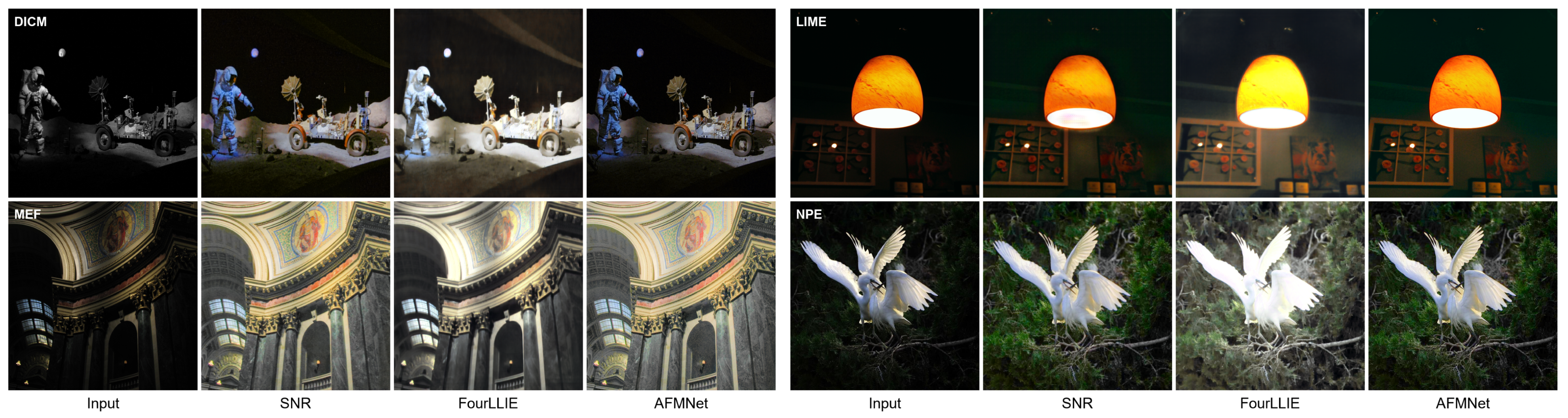 - We propose AFMNet, the first framework that decomposes low-light image enhancement into synergistic frequency prior estimation and spatial domain refinement. It learns a physically interpretable amplitude modulation prior to actively guide feature reconstruction, resolving the fundamental trade-off between global illumination consistency and local detail preservation.