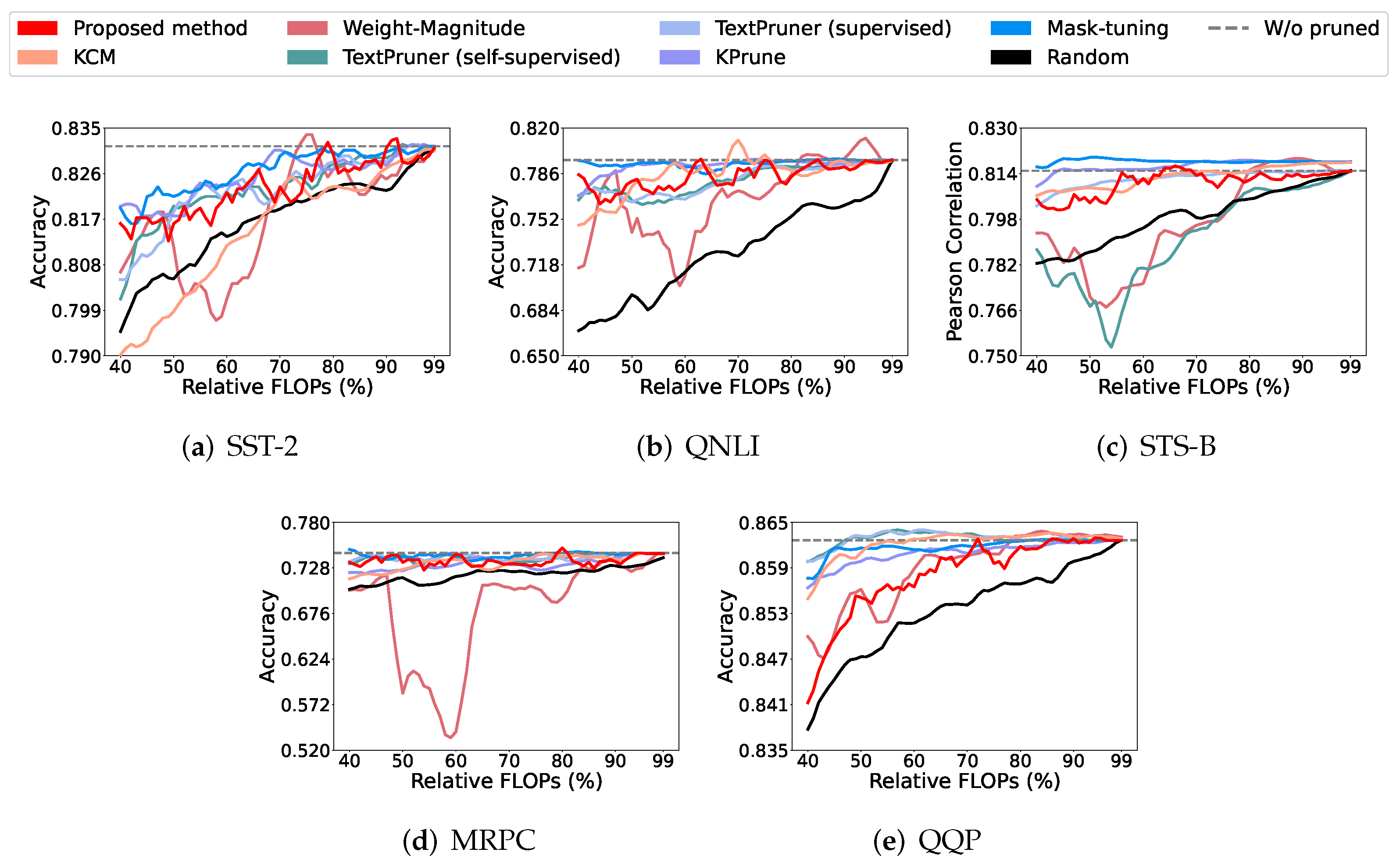 - Park, S.; Choi, H.; Kang, U. Accurate Retraining-free Pruning for Pretrained Encoder-based Language Models. In Proceedings of the Twelfth International Conference on Learning Representations, Kigali, Rwanda, 1–5 May 2023. [Google Scholar]
