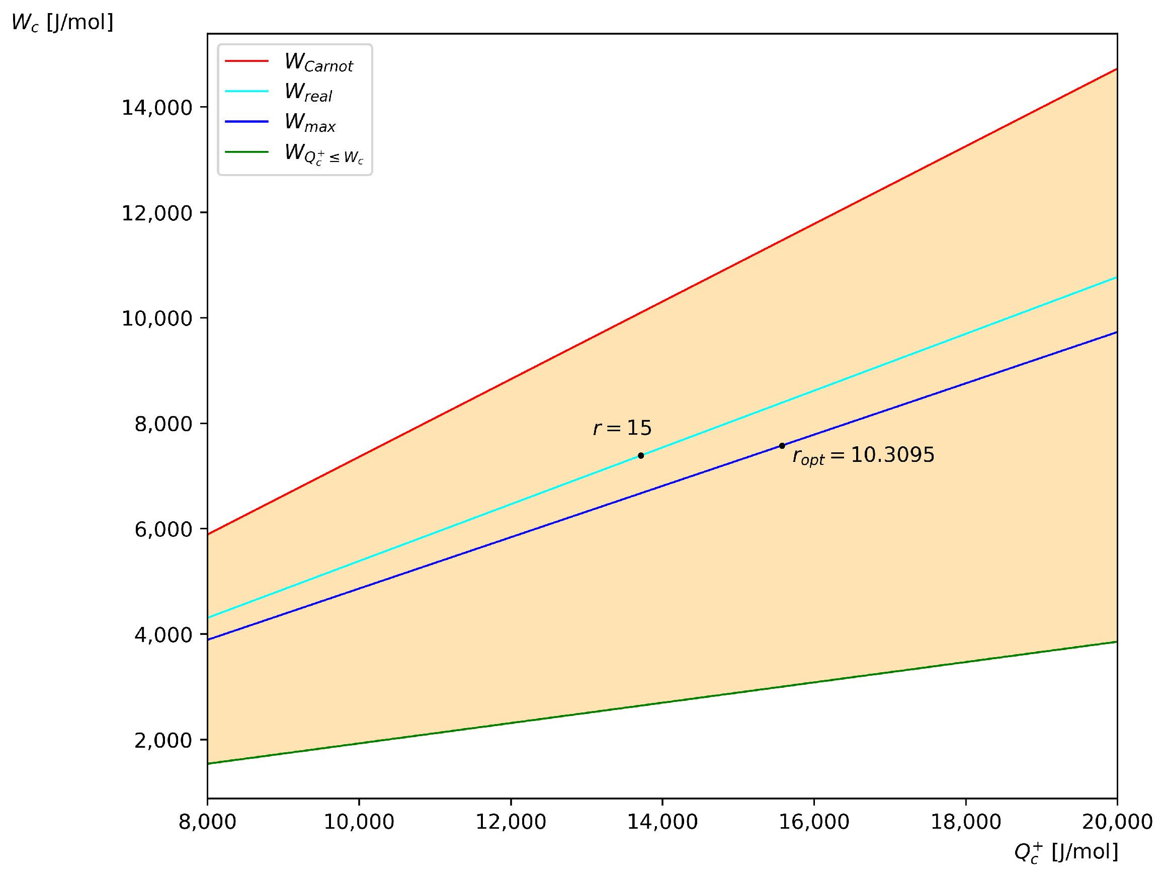 - Tyagi, S.K.; Chen, G.M.; Wang, Q.; Kaushik, S.C. A New Thermoeconomic Approach and Parametric Study of an Irreversible Regenerative Brayton Refrigeration Cycle. Int. J. Refrig. 2006, 29, 1167–1174. [Google Scholar] [CrossRef]