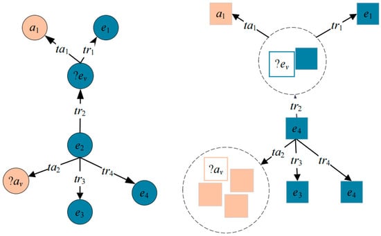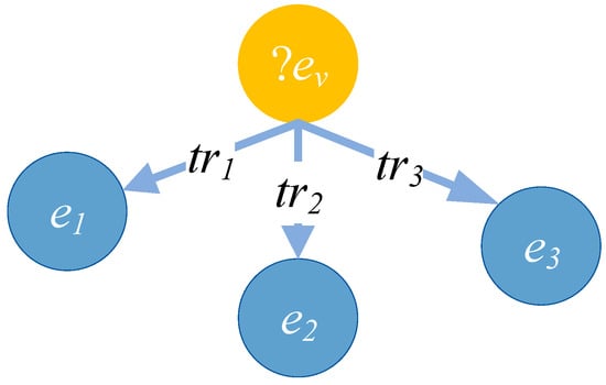 An entity query is shown in Figure 5. The entity includes the relation triples <?ev, tr1, e1>, <?ev, tr2, e2>, and <?ev, tr3, e3>. When calculating the embedded representation of the target entity ev, <?ev, tr1, e1> contains more specific information compared to <?ev, tr2, e2> and <?ev, tr3, e3>. The relational triple <?ev, tr1, e1> deserves more attention. In this paper, the relationship triple influence factor attr is defined to measure the influence of a specific relationship triple on the target entity ev. The calculation method is given in Formula (6).