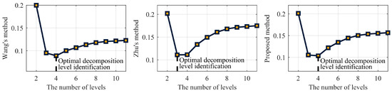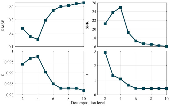 Figure 2 reveals that, under conditions of known true values, the optimal decomposition level determined by the