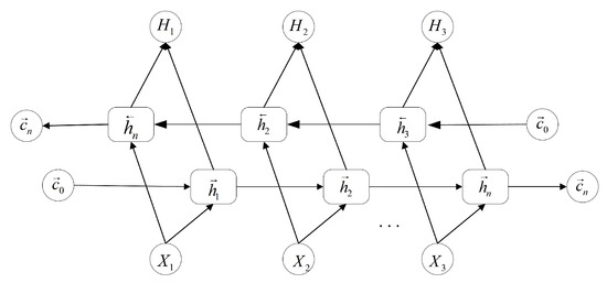 By integrating the Bi-LSTM network, the discriminator model is able to fully utilize the information of the entire input sequence to enhance the discriminative ability of the data, which not only enhances the ability of the generator to produce high-quality samples but also significantly improves the classification performance of the discriminator. The Bi-LSTM network structure is shown in Figure 2.