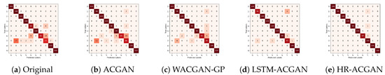 | Label | Testing Set | Imbalanced Set | ACGAN | WACGAN-GP | LSTM-ACGAN | HR-ACGAN |