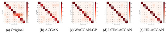 - HR-ACGAN-woLSTM model: This model is obtained by removing the Bi-LSTM network from HR-ACGAN and reverting back to the ordinary ACGAN discriminator structure.